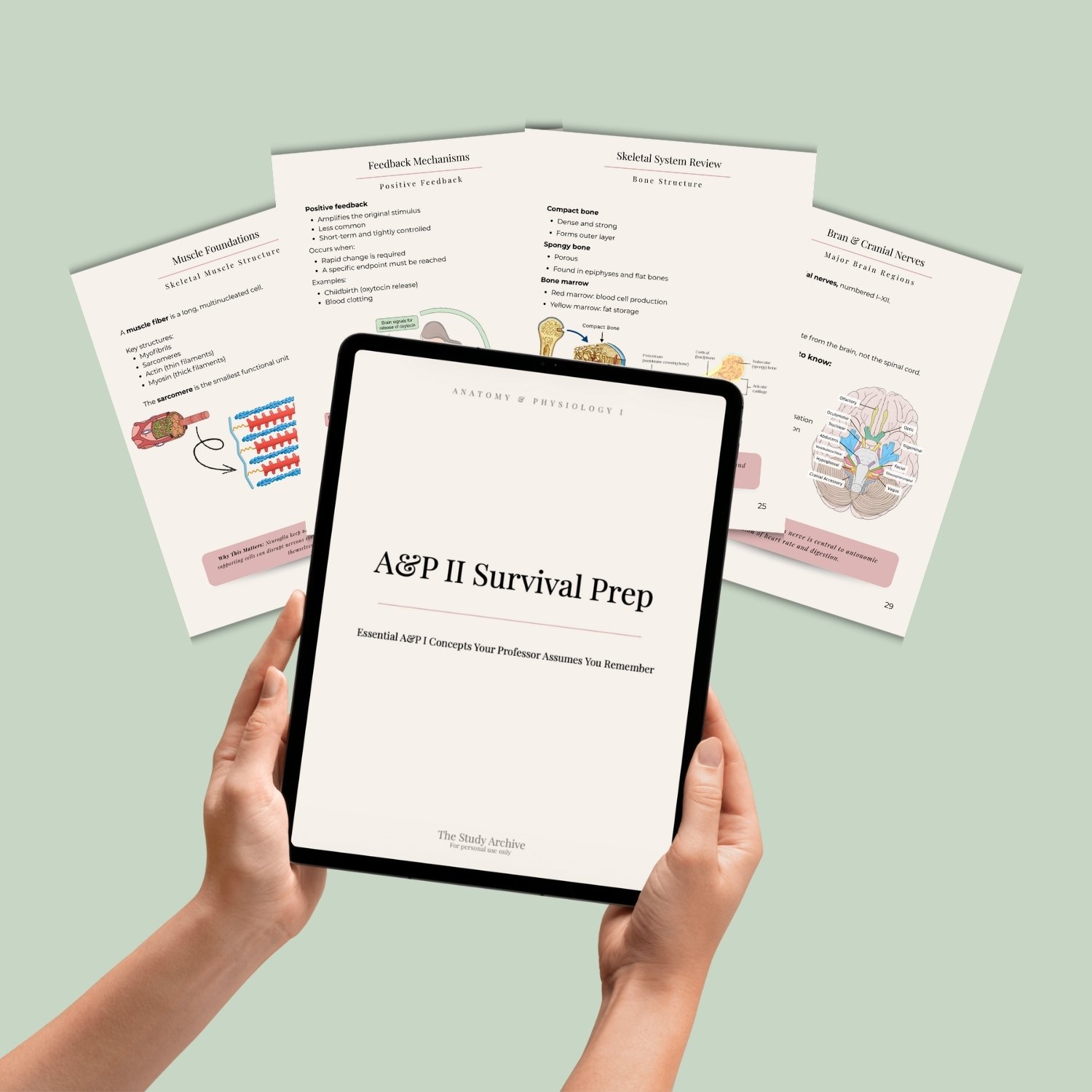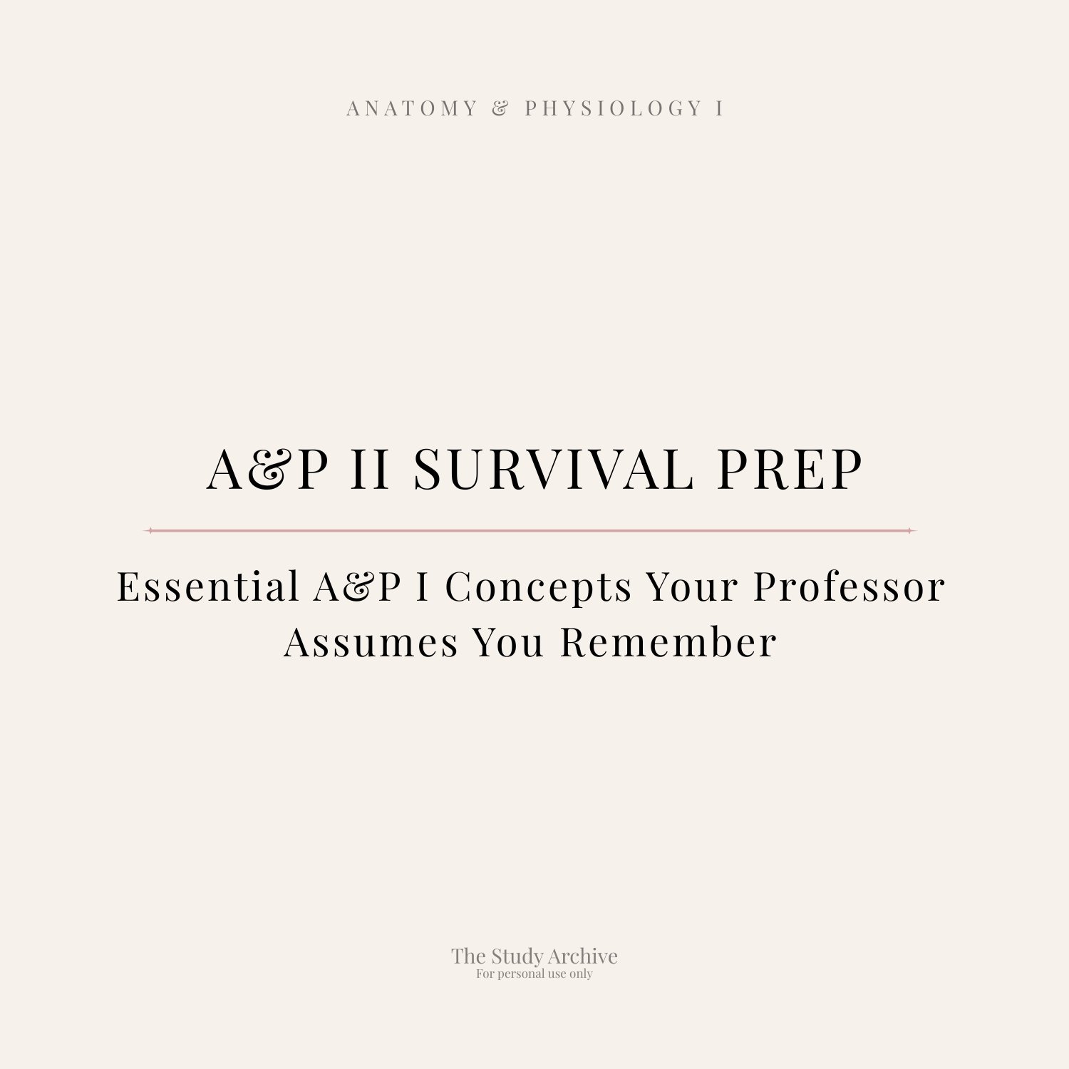 This prep guide reviews essential Anatomy & Physiology I concepts that are heavily relied on in Anatomy & Physiology II. Designed to support concept review and preparation before starting A&P II.
