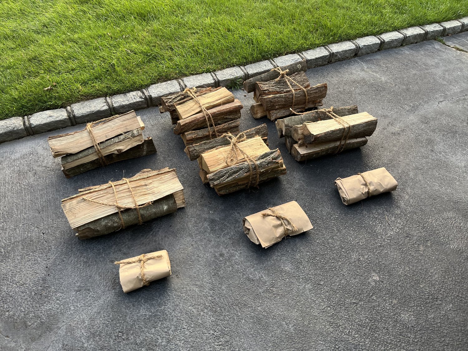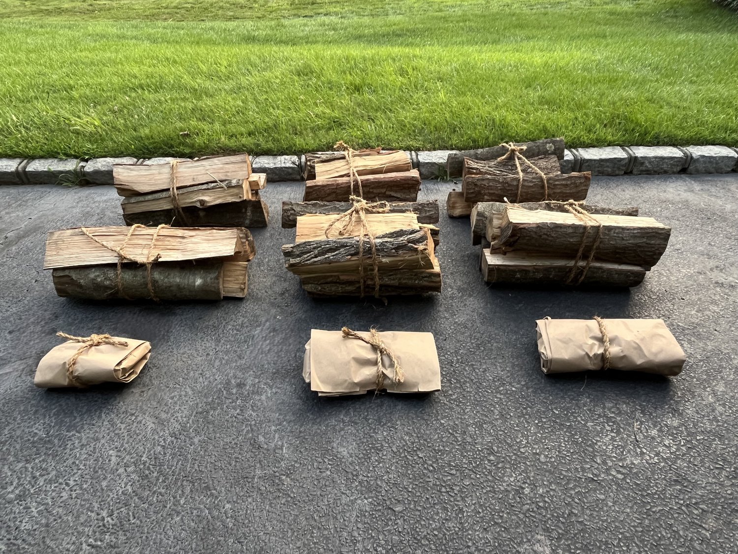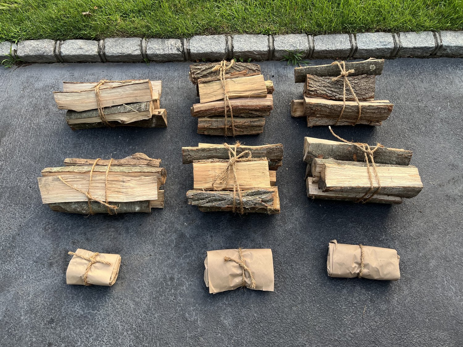 6 bundles of firewood (6+ logs each), and 3 packages of kindling.