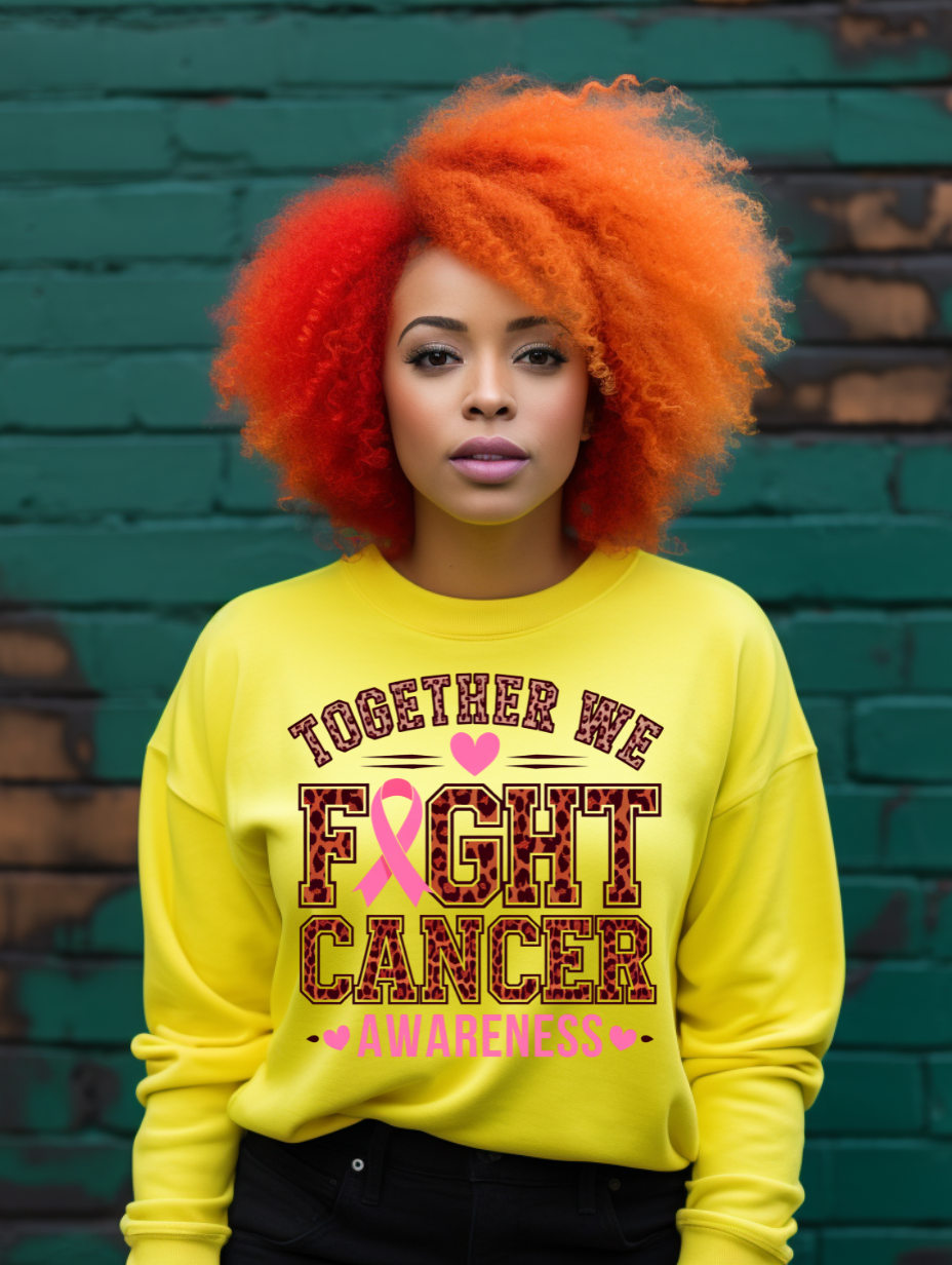 Together We Fight Cancer Awareness Leopard Print Pink Ribbon – Breast Cancer Support PNG, Digital Download