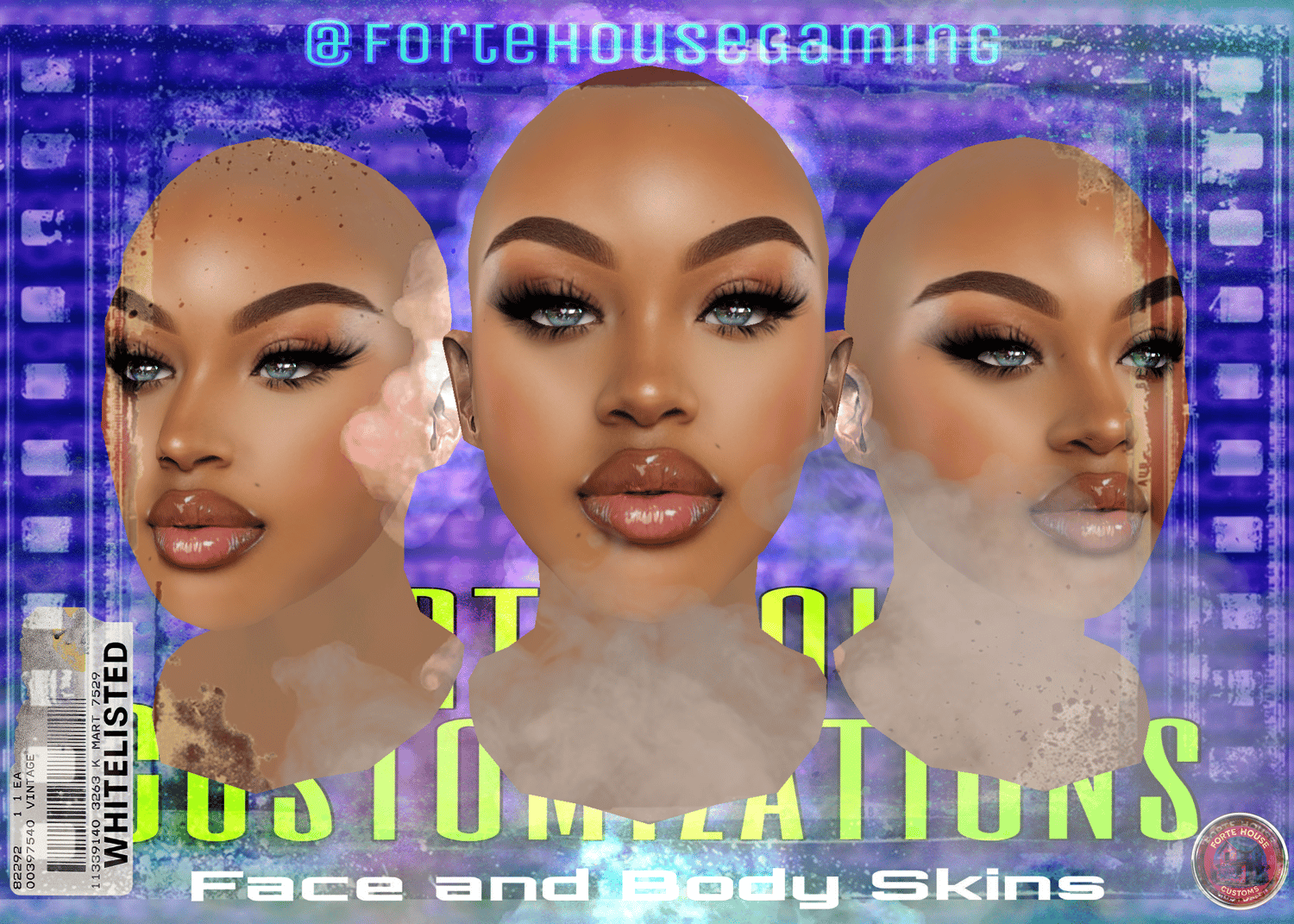 - Custom chin hair, tattoos, and lip detailing for added personality