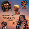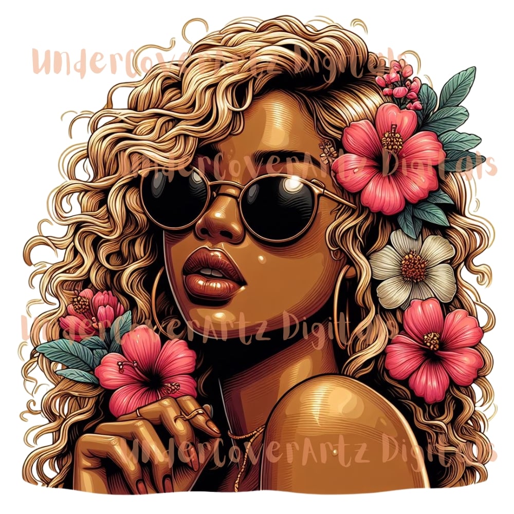 Explore the dazzling charm and dynamic flair of our "Sun-Kissed Girls" Vol.:1 collection, which includes 20 exquisite digital PNG files. Each piece of art features a beautifully rendered woman, decorated with floral elements and radiating confidence, sophistication, and grace. These high-quality files are perfect for an array of creative summer projects, suitable for t-shirts, posters, mugs, planners, and beyond.