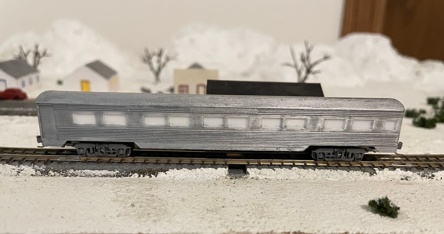This is a model of an 8 Roomette/6 Double Bedroom sleeping car used on the Rock Island. The trucks/couplers I suggest for this model are Micro-Trains #959 or 959-A (aluminum).