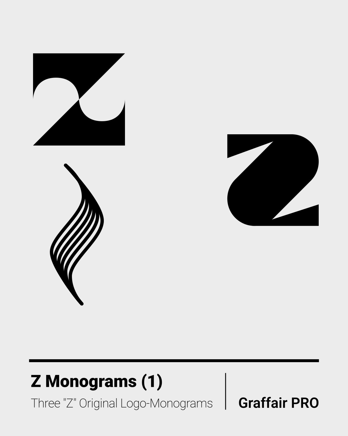 Z Monograms (1): The 1st set of three original "Z" logo-monograms, included in the "1050 SVG Monograms" super bundle, amongst others, which also features an Index catalog.