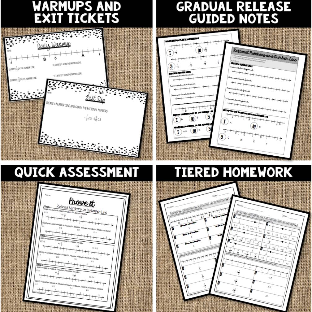 Rational Numbers on a Number Line Guided Notes Homework Warm Ups Exit Tickets