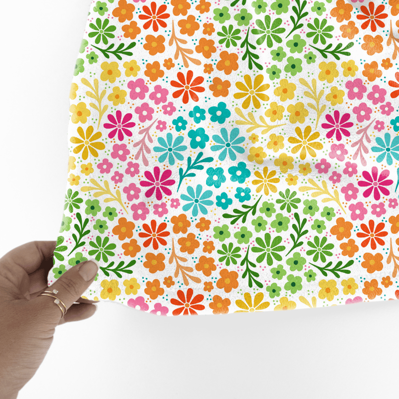 Dainty daisy flowers in candy rainbow colors.