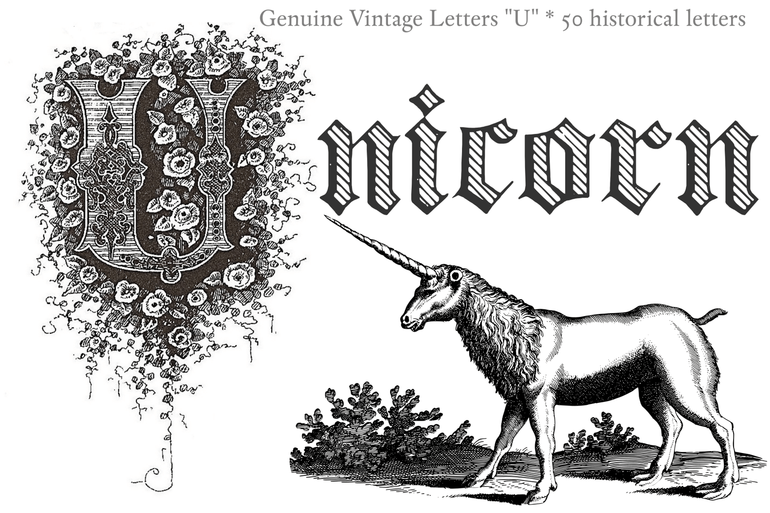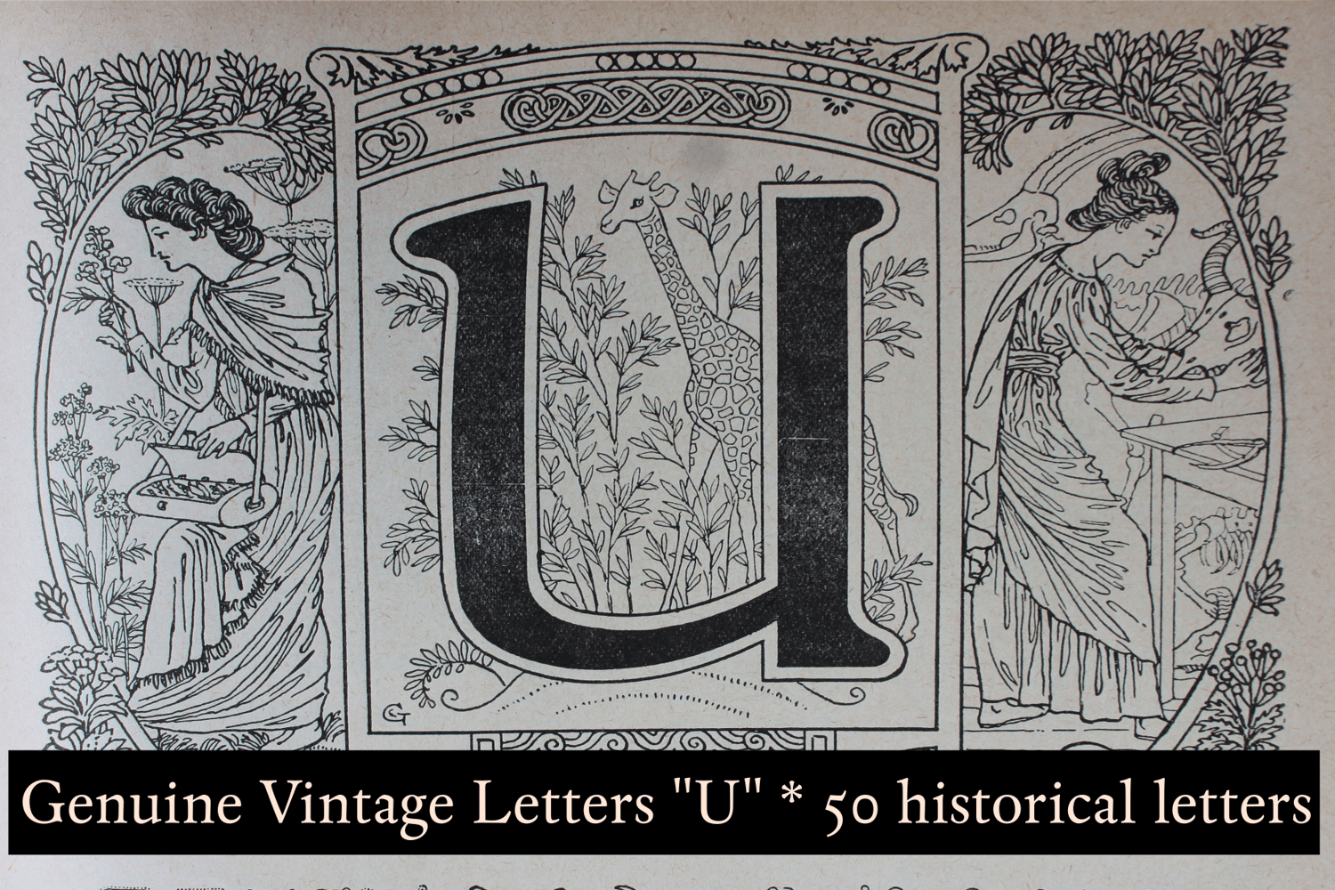 An authentic and genuine set of 50 (!!!) letters "U" from historical sources like old catalogues, books, magazines ad type specimens. Many historical periods and styles.Perfect to complete your artwork at drop caps uses, titles of books, ideas for folders, advertise, books covers, illustrations and much more.