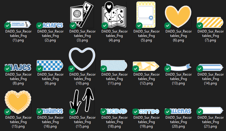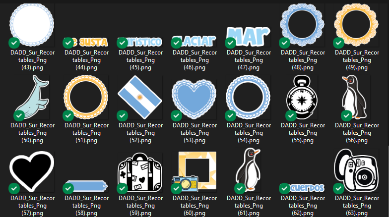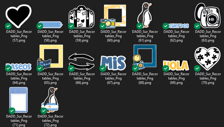 Esta colección contiene 44 unidades (diseños digitales) en tamaño A4 (21cm x 29,7cm) + 6 hojas A4 de recortables (frases, tarjetas, digistamps) en .jpg y .pdf + 72 .PNG INDIVIDUALES con fondo transparente.