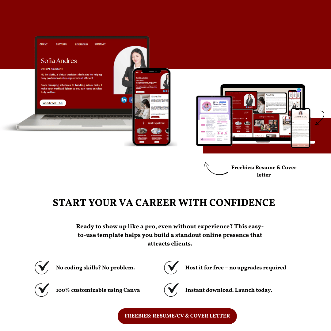 Start strong with this clean, easy-to-edit Canva website template perfect for beginner Virtual Assistants and Freelancers!