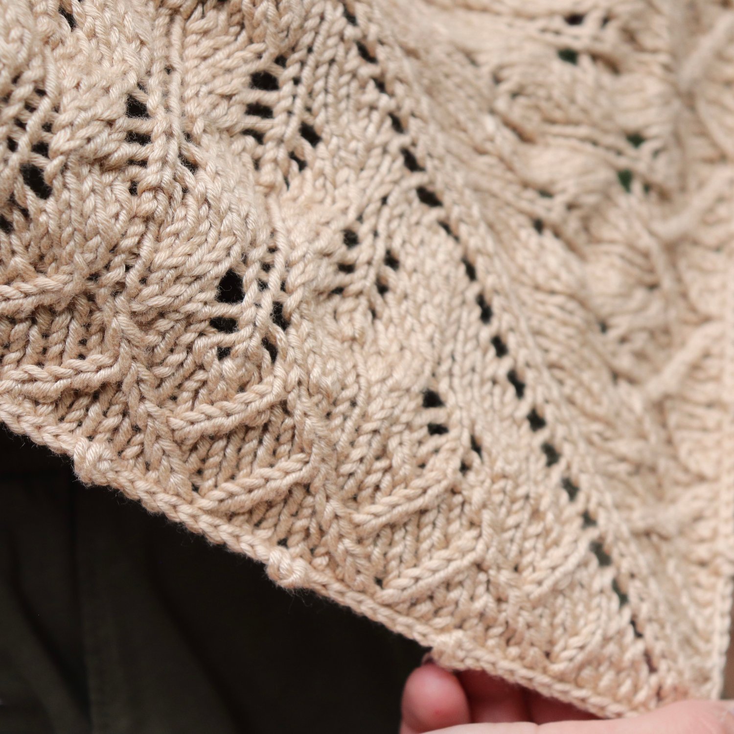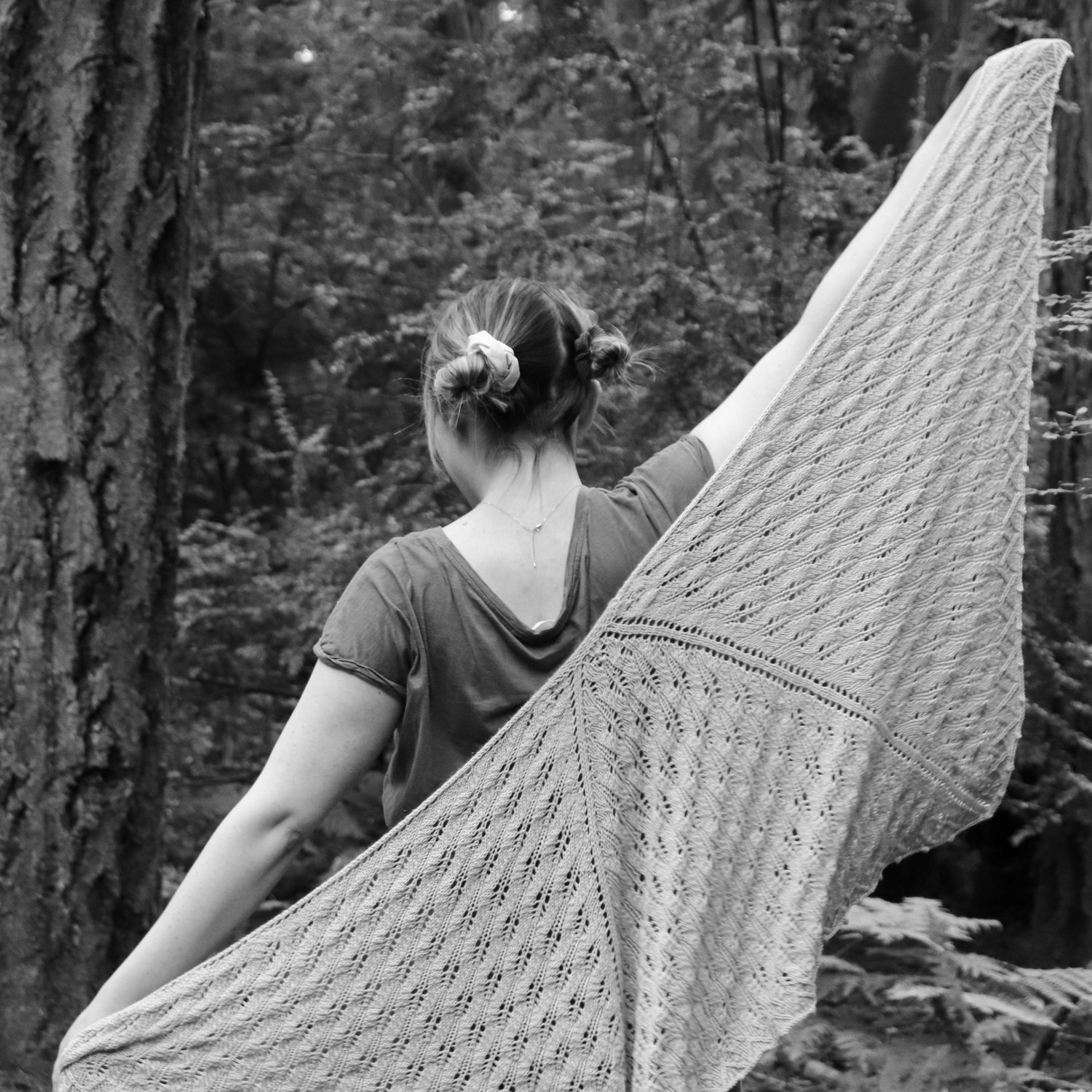 The Windermere Shawl is a “semi-circular”/half-hexagon piece featuring lace stitches reminiscent of falling Elm tree leaves, a small section of strategic traveling stitches that embody the famous peaks, and a delicate picot bind off. Simple lace techniques and basic increases come together to create a stunning shawl that is perfect for wrapping around your shoulders on a walk along The Lakes on a summer evening.