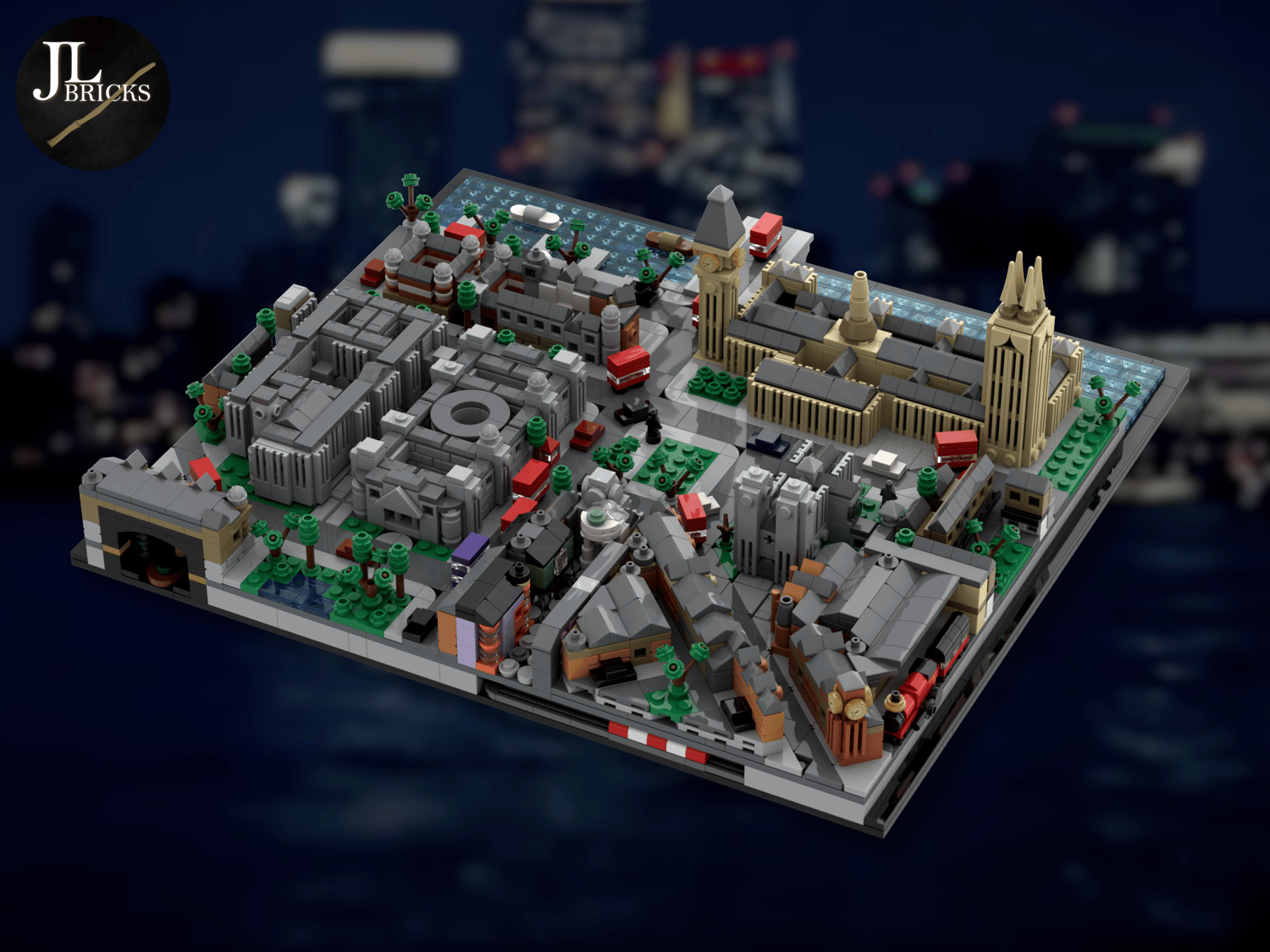 Also included is an underground section of the Tube, a few red buses, black taxis and red telephone boxes.