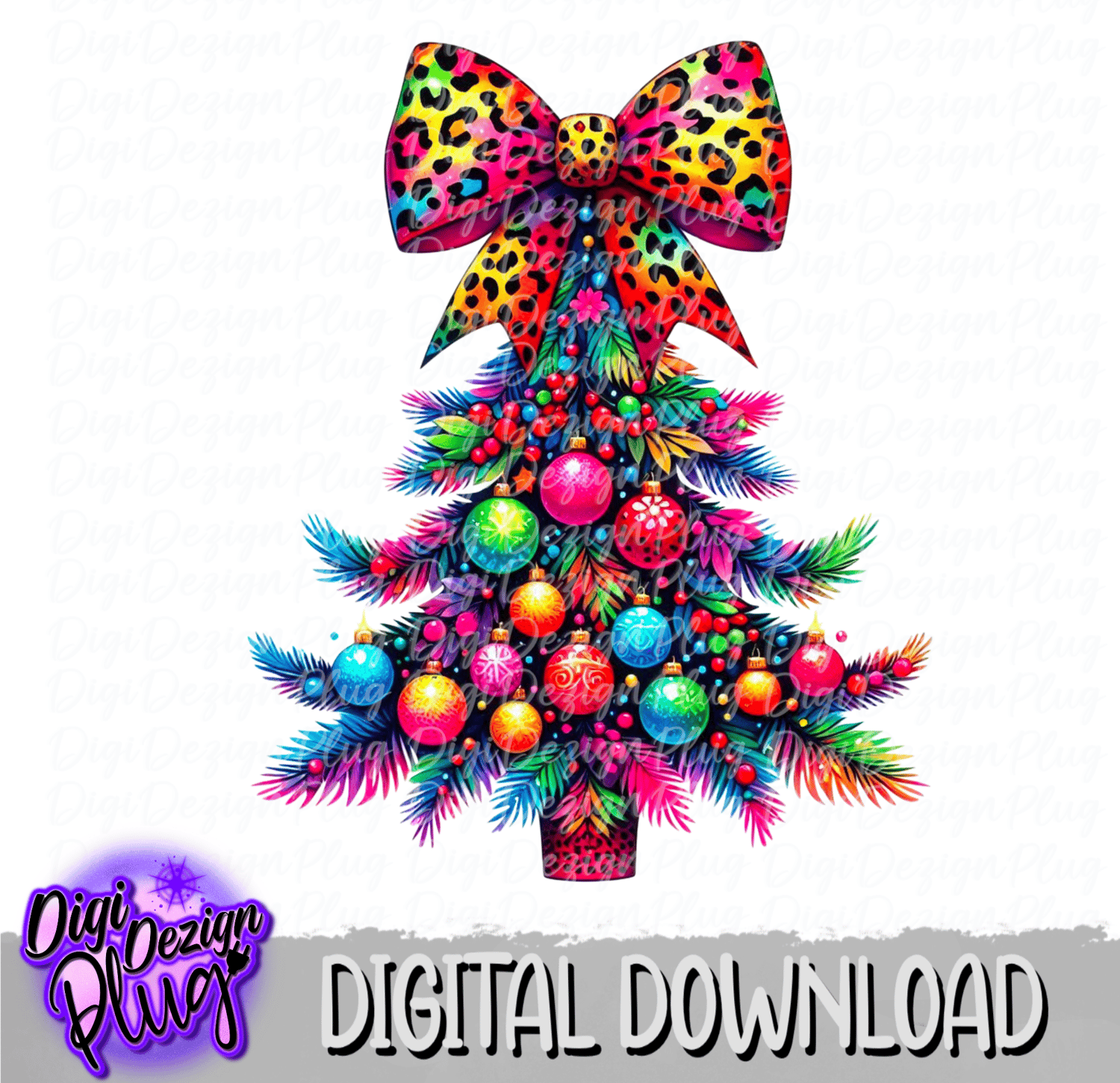 Colorful Christmas Tree With Animale Print Bow - Inatant Download
