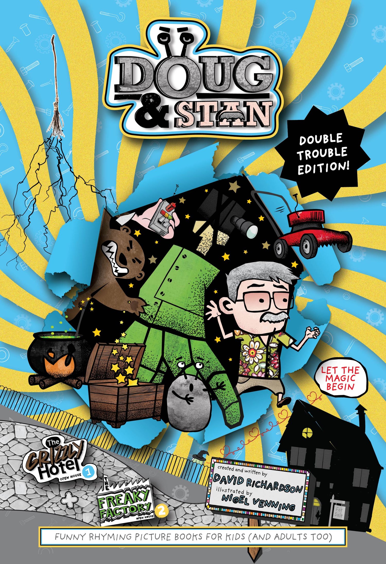 The Grizzly Hotel - Enter the crazy world of Doug and Stan as they try to sell their house - until magical neighbour Dotty stirs up chaos with wild disguises and a broomstick flying grizzly bear! Packed with laughs, surprises, and a hidden message, this picture book is perfect for kids who love magic, mischief, and mayhem.