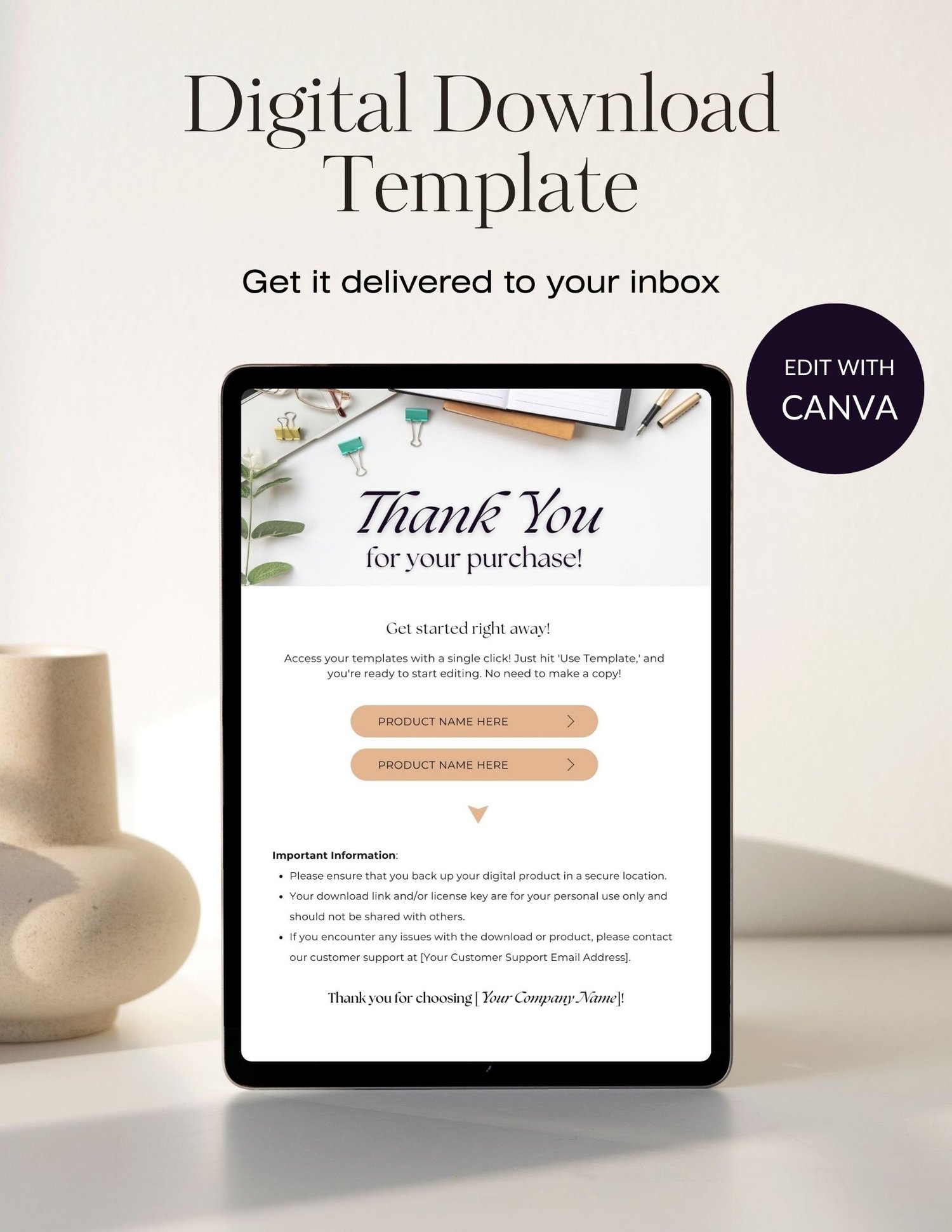 Maximize customer satisfaction and simplify your workflow today. Upgrade your digital product delivery process with our Digital Download Template and leave a lasting impression on your customers.