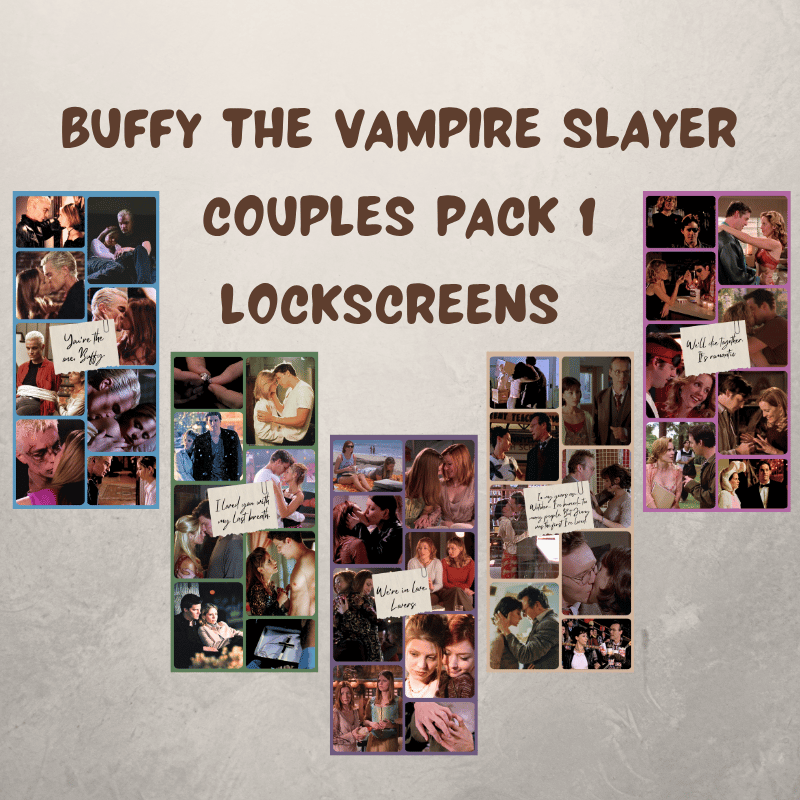 Step back into the world of Buffy the Vampire Slayer with this curated set of five romantic lockscreens, each celebrating one of the show’s most unforgettable relationships. From first loves to fated tragedies, this collection honors the emotions that defined the Buffyverse.