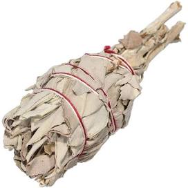 Made of natural herb California white sage measuring approx. 3-4". Made in USA. Smudging is used for cleansing and purification by smoke. Smudging can be used on items/objects such as crystals; on persons by wafting smudge smoke around them; on rooms/buildings to clear energies.