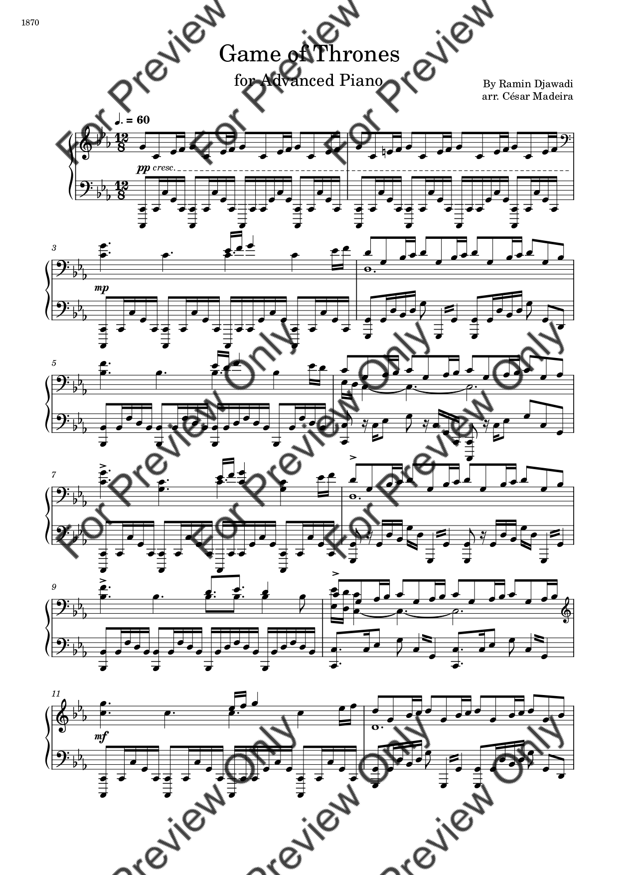 Game Of Thrones Theme. Arrangement for Advanced Piano. With Full Score. Have fun!