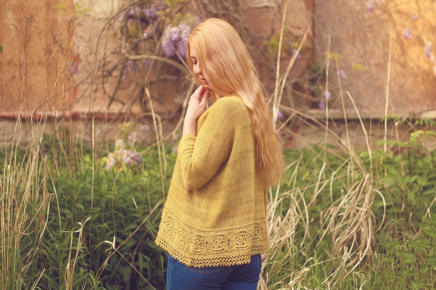Majula is a seamless, worked from top to down, oversized sweater. It is mostly made from simple, Stockinette stitch, which allows you to work really fast. The sophisticated lace border, decorated with cute little picots, is made from side to side and attaching to the main part during knitting.