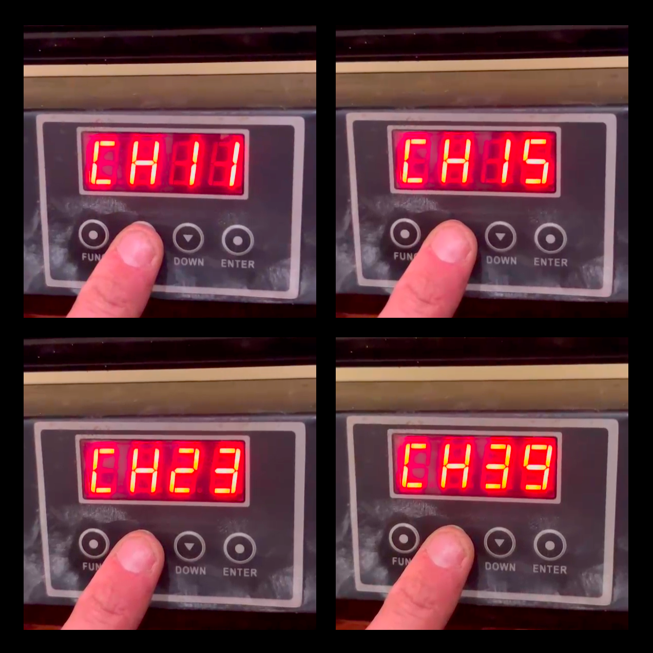 * Verifique, desde el display del equipo, que muestre los modos: CH11, CH15, CH23 y CH39 (ver cuarta foto).