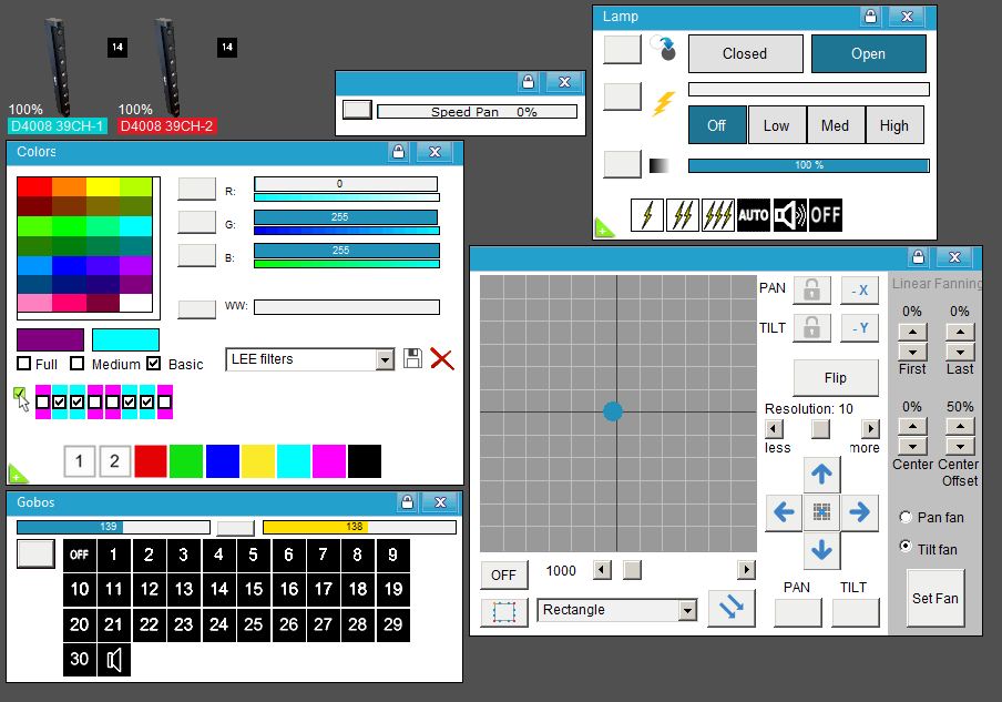 • CON EL FIXTURE DE 39 CANALES: El color individual de cada led (o todos juntos si quieren).