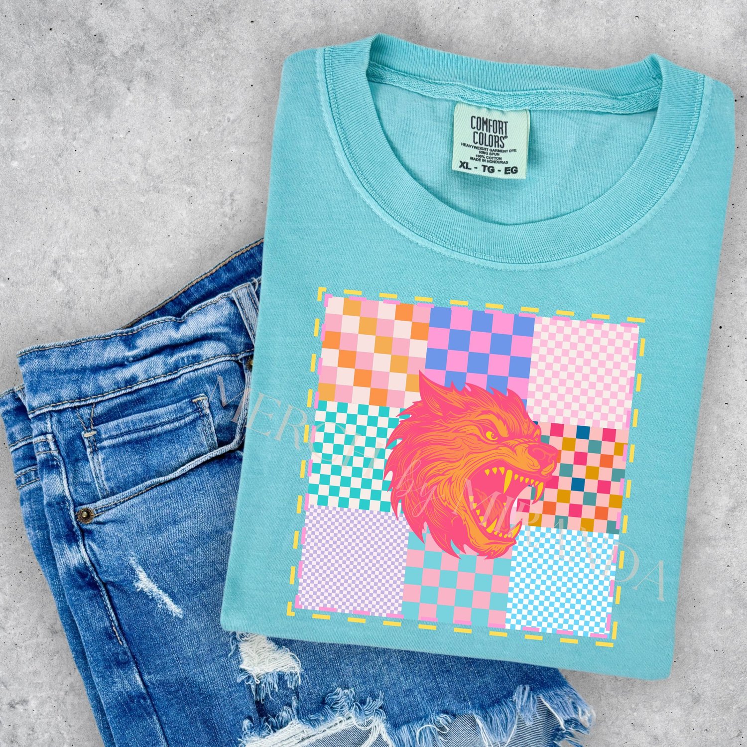 Wolf Mascot - Wolves - Checkered - Colorful - Digital Download