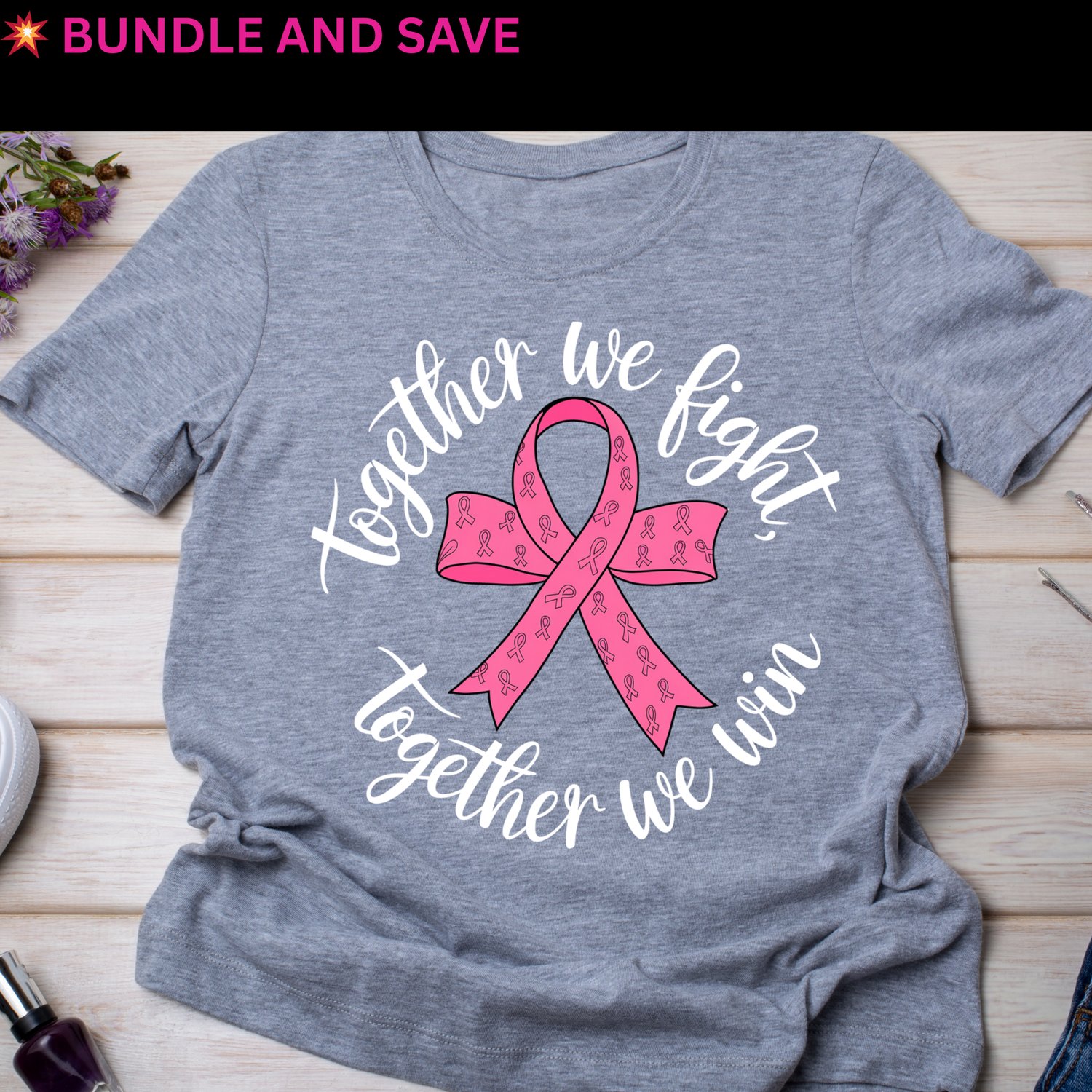 Cancer Awareness PNG Bundle - Together We Fight, Together We Win - Pink Ribbon Designs for T-shirts, Tumblers, Mugs & More