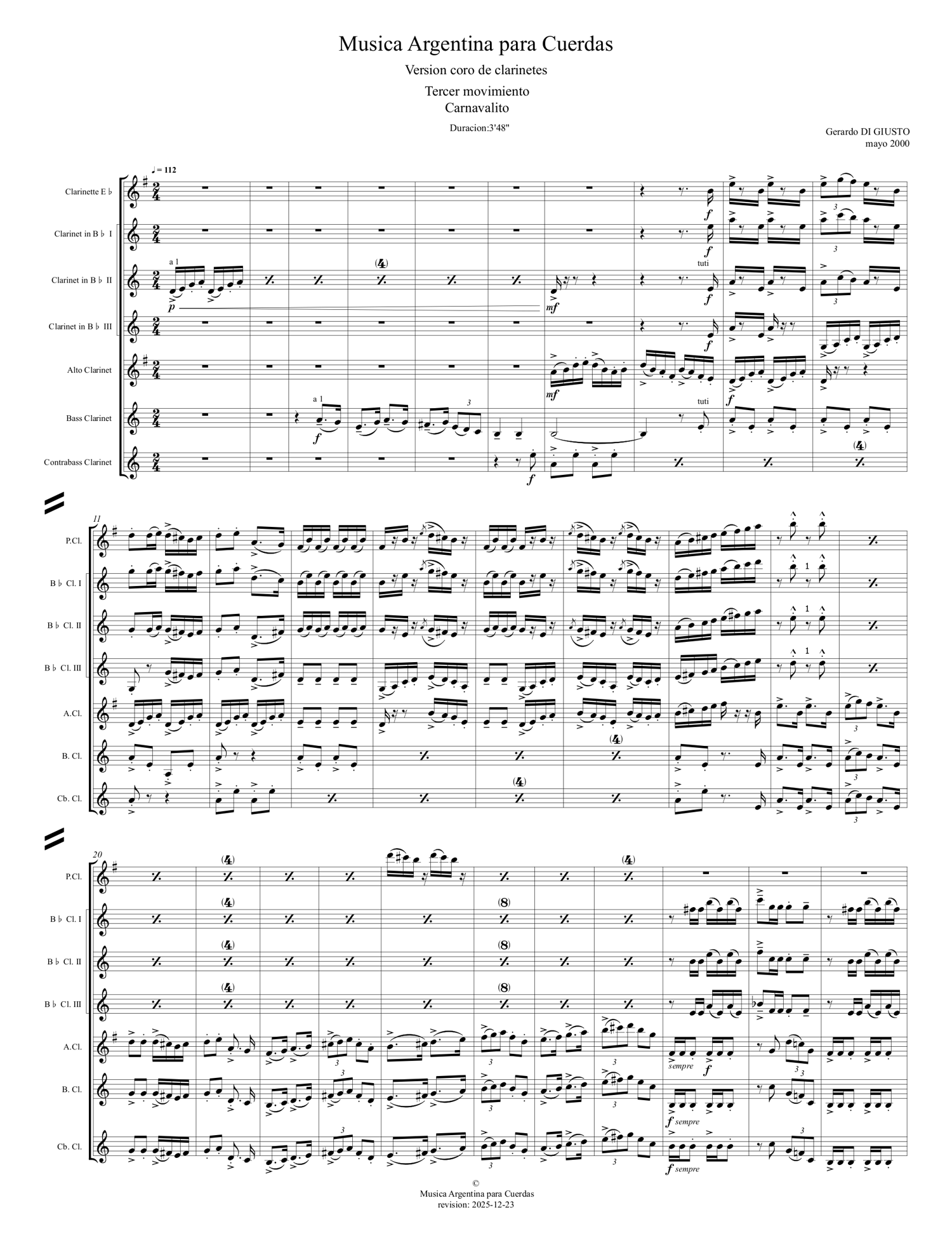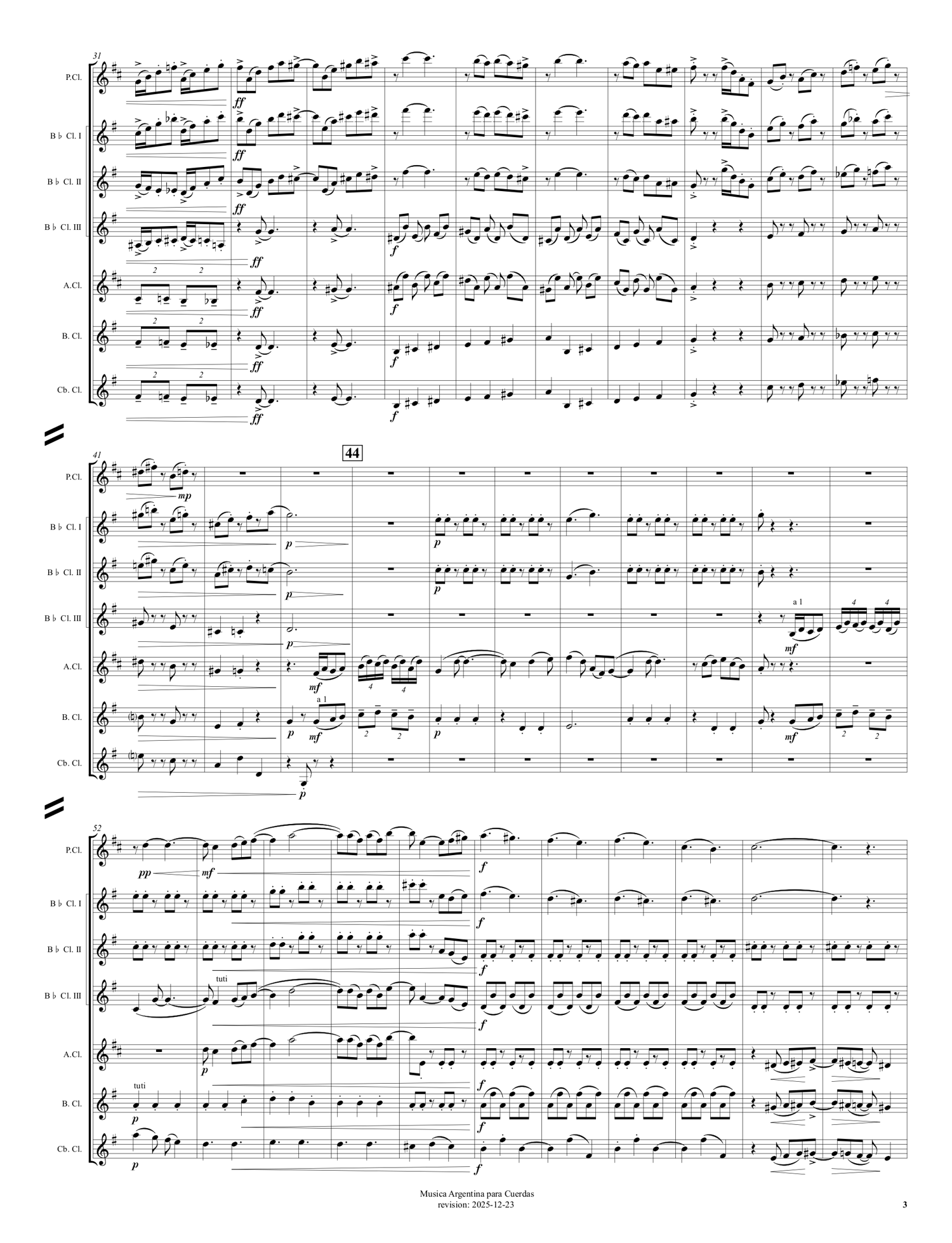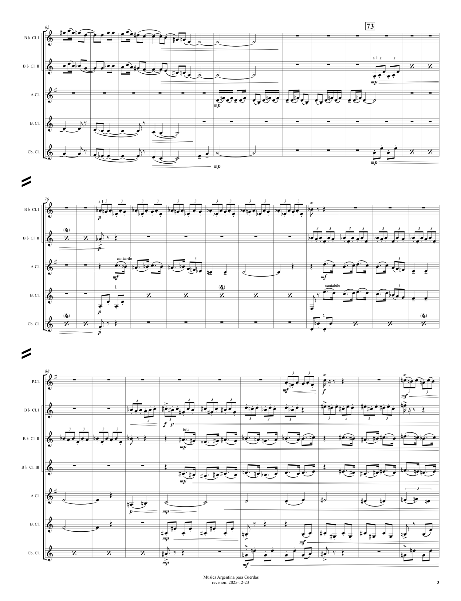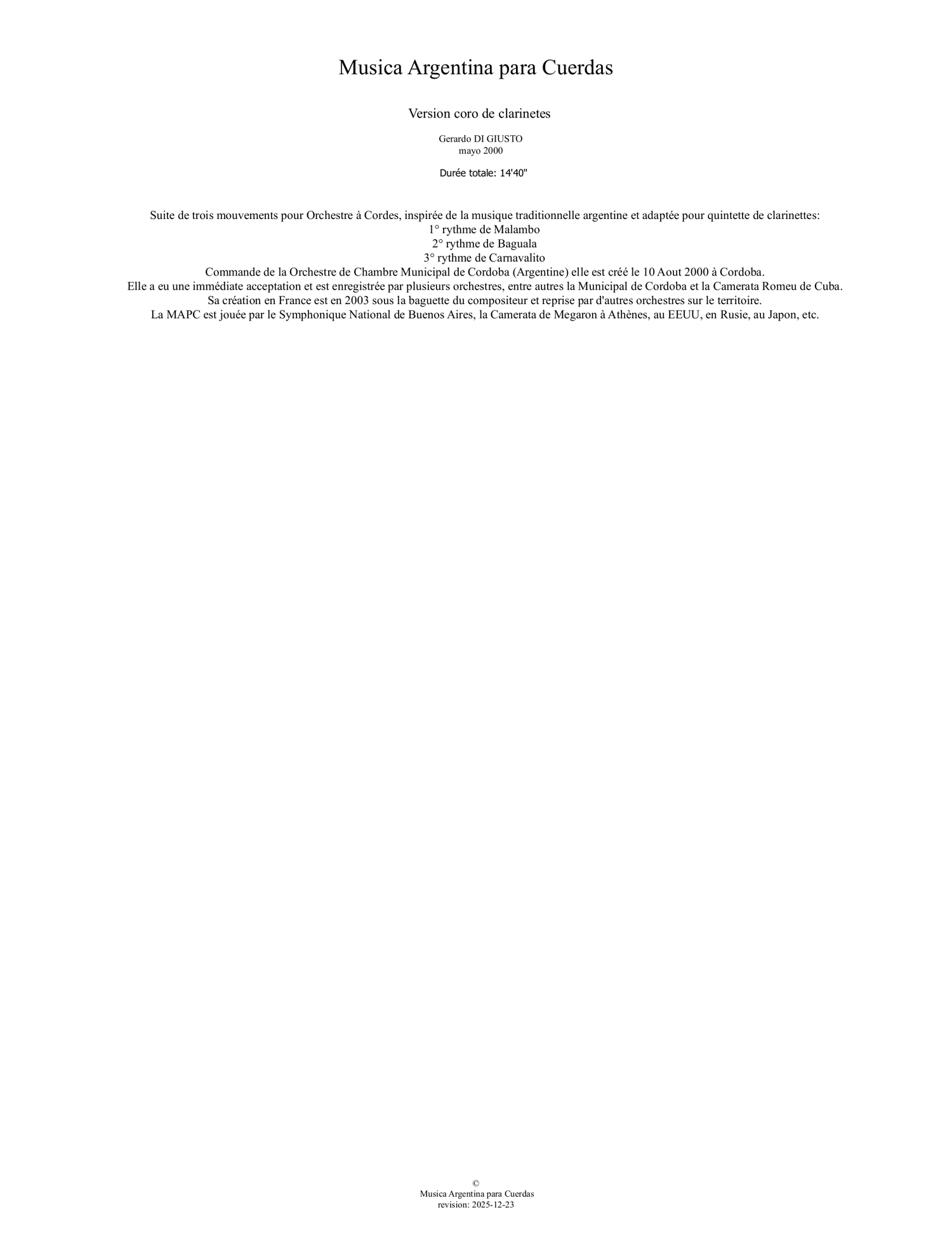 Suite de trois mouvements pour Orchestre à Cordes, inspirée de la musique traditionnelle argentine et adaptée pour Chœur de clarinettes: