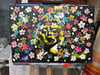 A striking fusion of contrast and color, Floral Eclipse by Zita Monori-Monory captivates with its dynamic interplay of bold imagery and delicate detail. Set against a deep black background, an ethereal, abstract portrait emerges, partially obscured and illuminated by splashes of vibrant yellow and gold. Surrounding the central figure, a cascade of hand-painted, multicolored blossoms creates a vivid, dreamlike atmosphere. The juxtaposition of shadow and light, mystery and vibrancy, invites viewers to contemplate themes of identity and transformation.