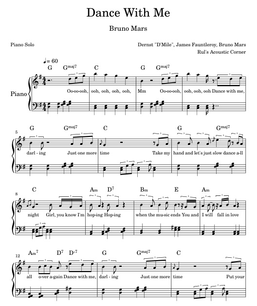 Bruno Mars - Dance With Me, the version Instrumental Piano Solo Notes PDF Audio MP3