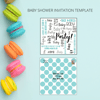 Baby Shower Invitation TEMPLATE! Fun, festive, modern. 5x5" (12.7x12.7 cm) flat card available in multiple colors. Personalize, print, cut!
