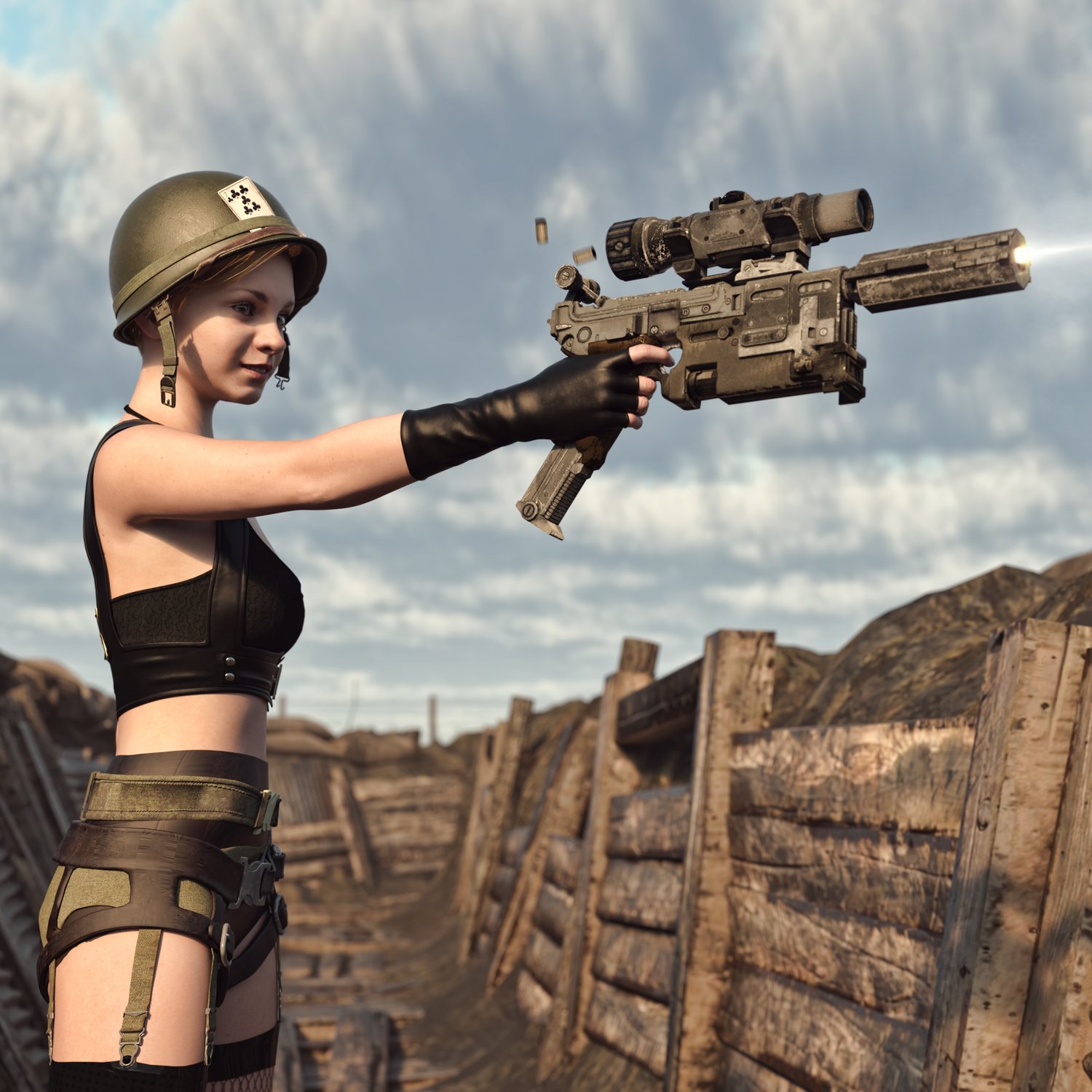 A scifi take on the iconic pistol of WW2, from a famous alternative history game. a very valuable trophy for the allies, now more complicated to get. The prop is rigged and converted for use with DAZ. Trigger, safety, slider etc also rigged for more realistic pictures.
