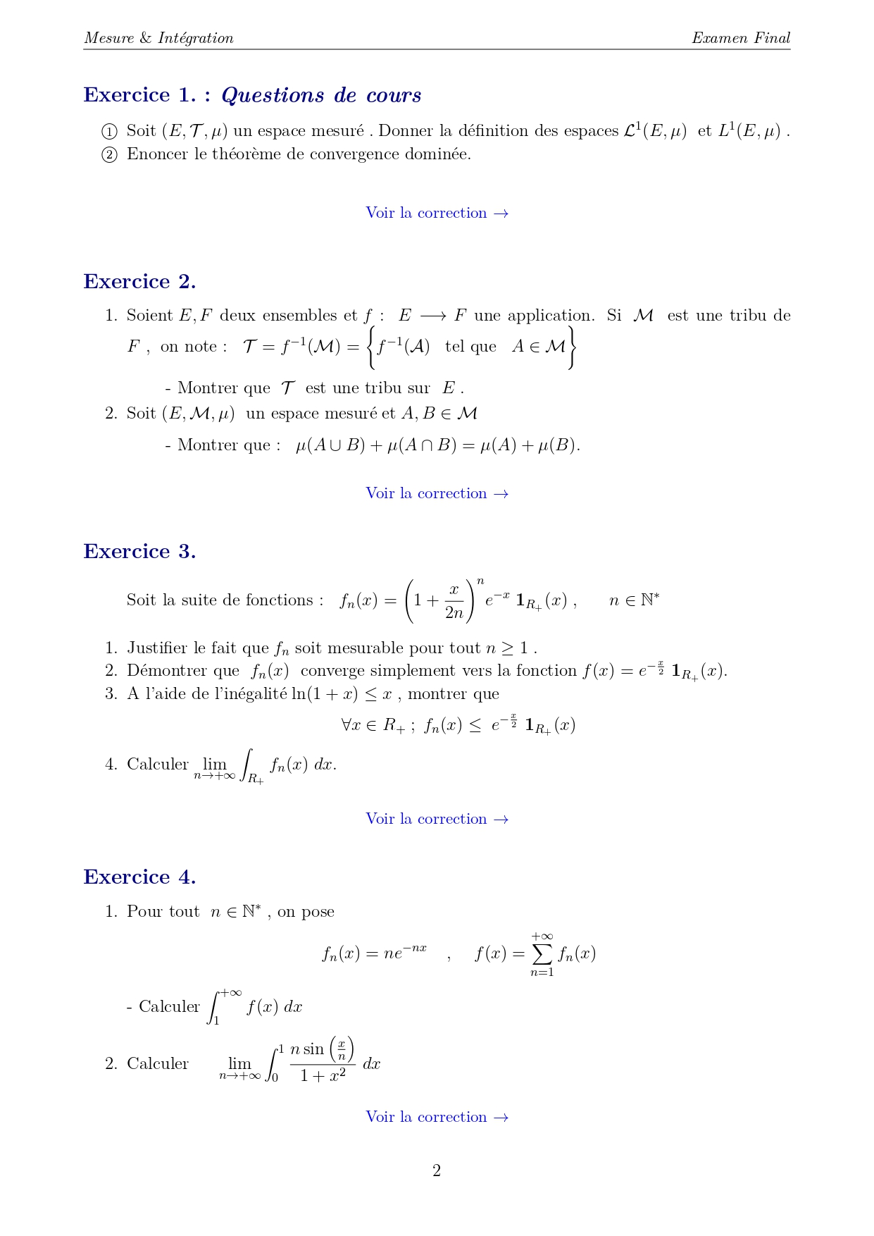 Mesure et intégration - Examen Final n^1