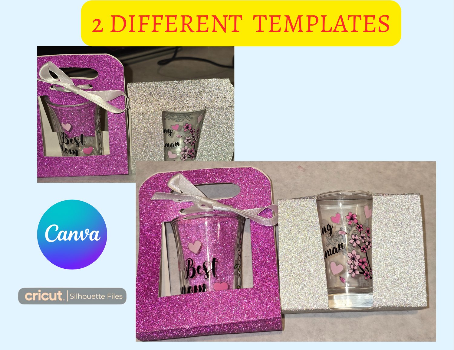 2 SINGLE DOLLAR TREE SHOT GLASSES HOLDER ( CUT FILE) (CANVA )