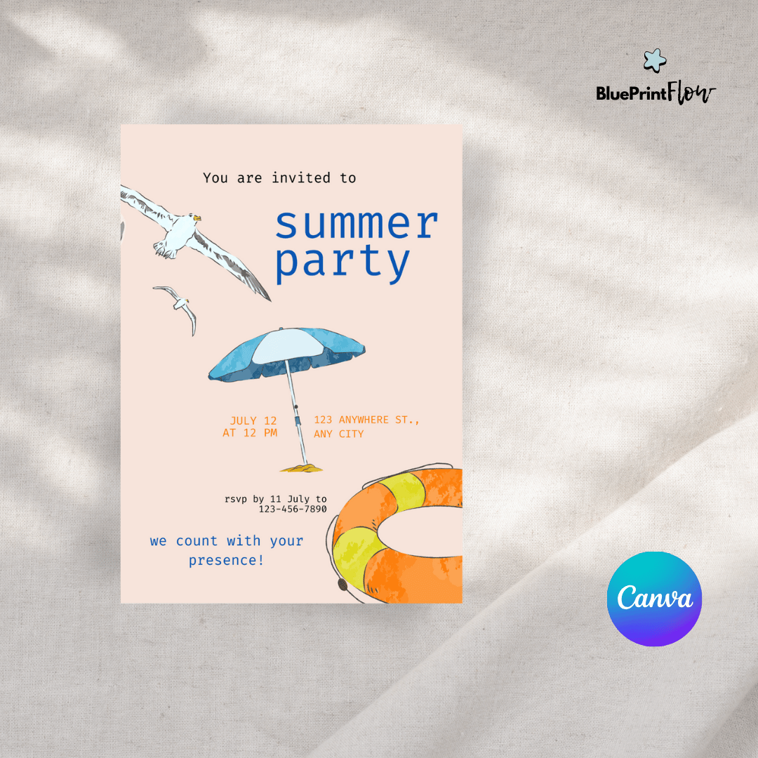Simple Summer Party Invitation Canva Template Design