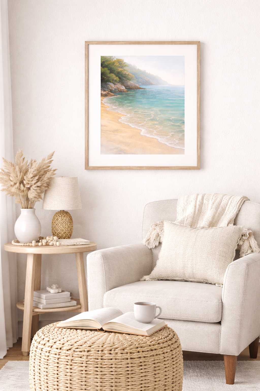 Designed to evoke stillness and reflection, this serene beach print is perfect for bedrooms, nurseries, bathrooms, reading nooks, or any space in need of a soft coastal touch. Its neutral palette blends effortlessly with coastal, beach house, and minimalist décor styles.