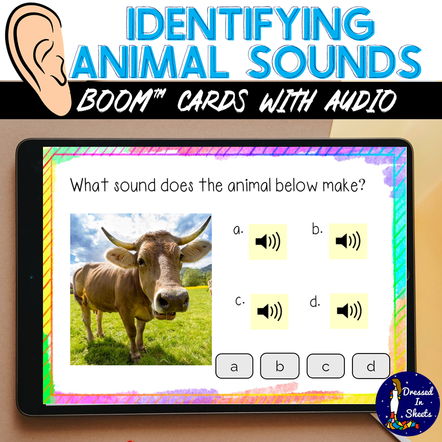 What sound does the animal make? Can you tell the difference between the sounds? What other sounds can you identify? Let's find out with this fun BOOM deck which will test your listening skills.