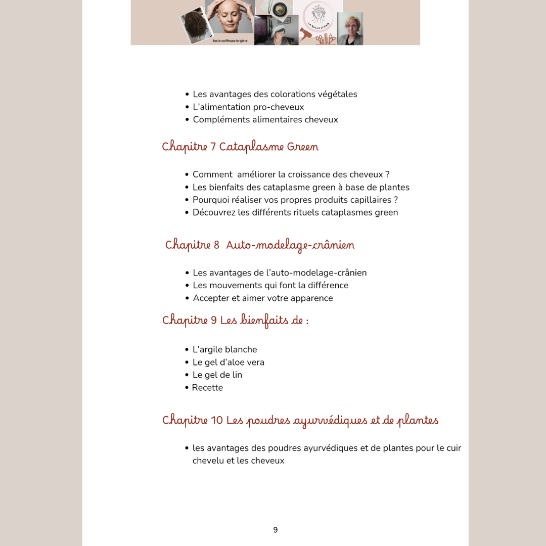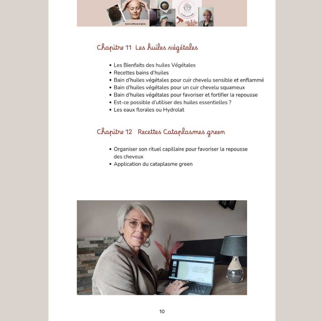 En tant que socio-onco-coiffeuse passionnée par le bien-être et les soins capillaires naturels, forte de mes 8 années d'expérience en cancérologie au Centre Léon Berard et aux hospices civils de Lyon Sud, je suis ravie de vous présenter ce guide indispensable en téléchargement numérique.