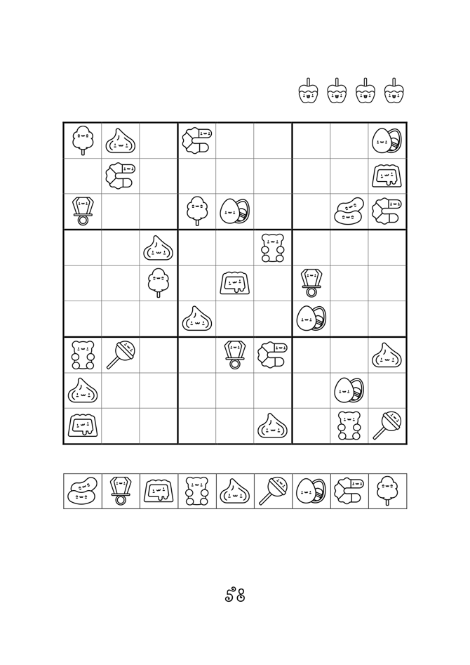 Well, this sweets themed colour in Sudoku book is perfect for you. You will find: