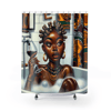 Enhance your bathroom with a touch of elegance, courtesy of Dope design showcasing stylish Afrocentric Vibes as This Queen relaxes with a glass of wine after a long day.