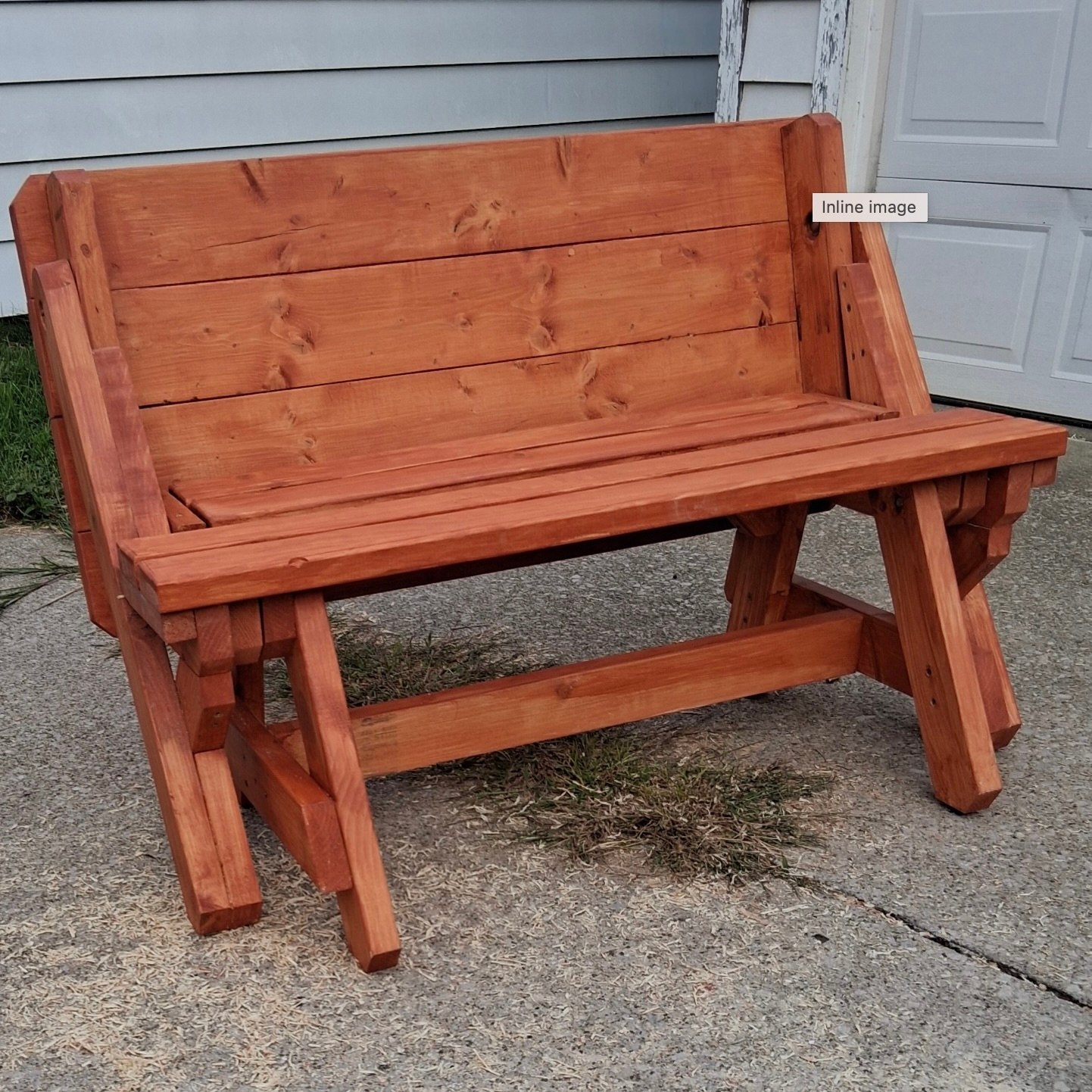 The folding picnic table is the ideal piece for a small deck or balcony. This piece of outdoor furniture provides a comfortable twin bench for morning coffee and converts to quite a nice picnic table for outdoor dining. Surprise your friends when you pop this thing in front of their eyes. In less then ten seconds, you will go form a bench made for two to a two bench table that will seat four easily, and the reverse conversion is just as fast. Its a bench plan / picnic table plan and serves quite well in both modes.