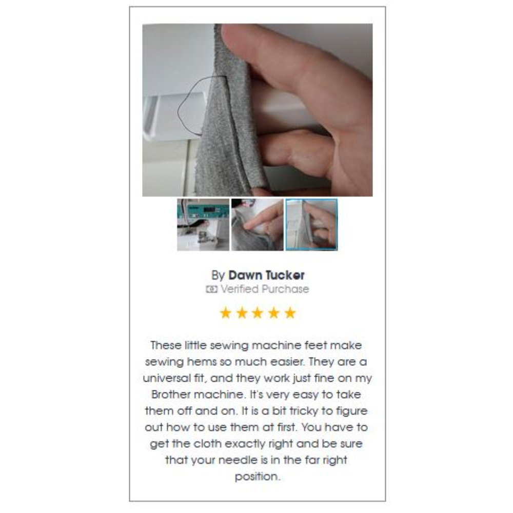 The Sewing Hemmer Foot makes it all so easy and quick to do. The Sewing Hemmer Foot easily screws onto your sewing machine and you’re good to go! Sewing hems have never been so easy with the Sewing Hemmer Foot. Whether you’re a novice or an expert with sewing machines, the Sewing Hemmer Foot is definitely a must-have for any sewing kit.