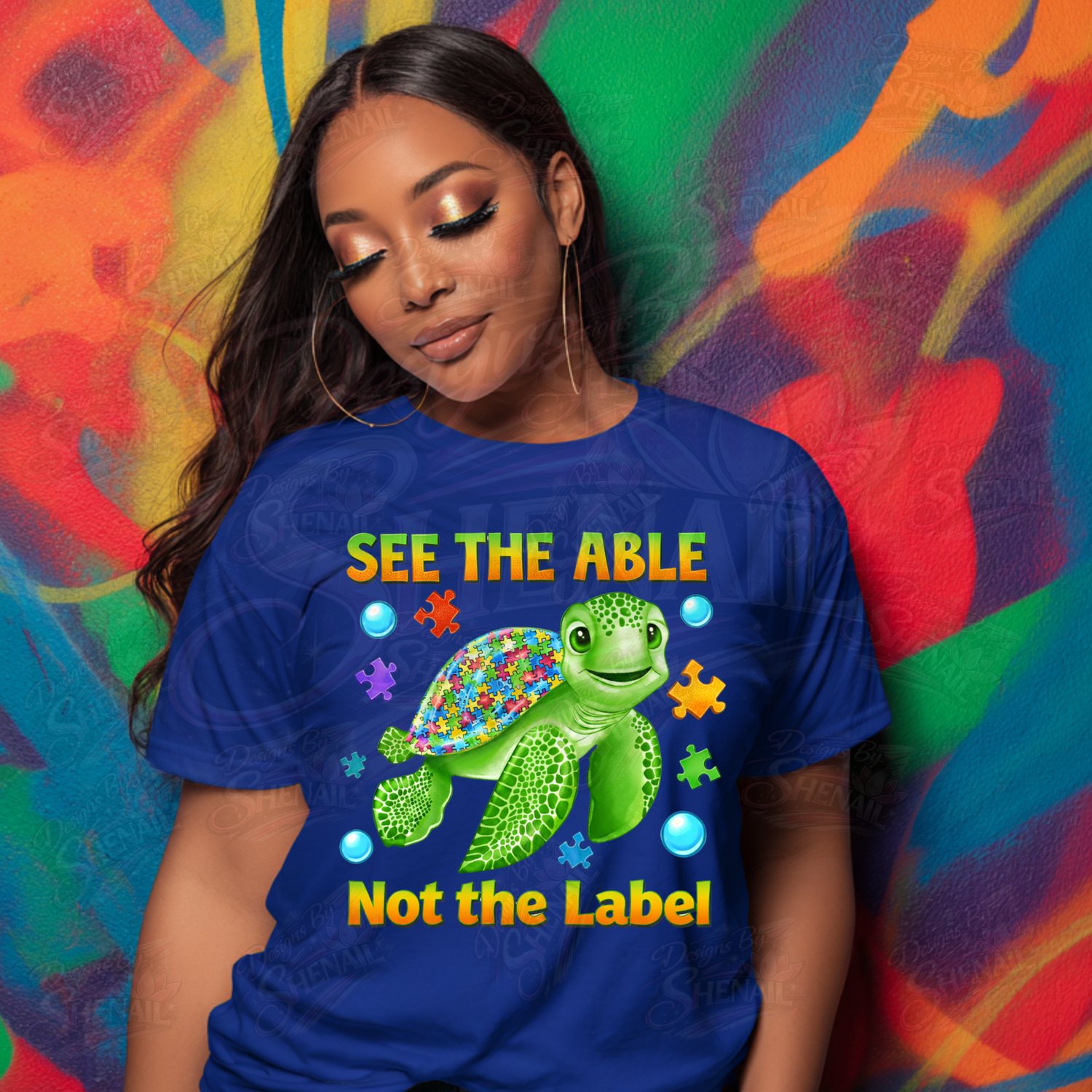 Autism Awareness Sea Turtle PNG, See The Able Not The Label Design, Neurodiversity Support Turtle Clipart, Sublimation DTF – Instant Digital Download