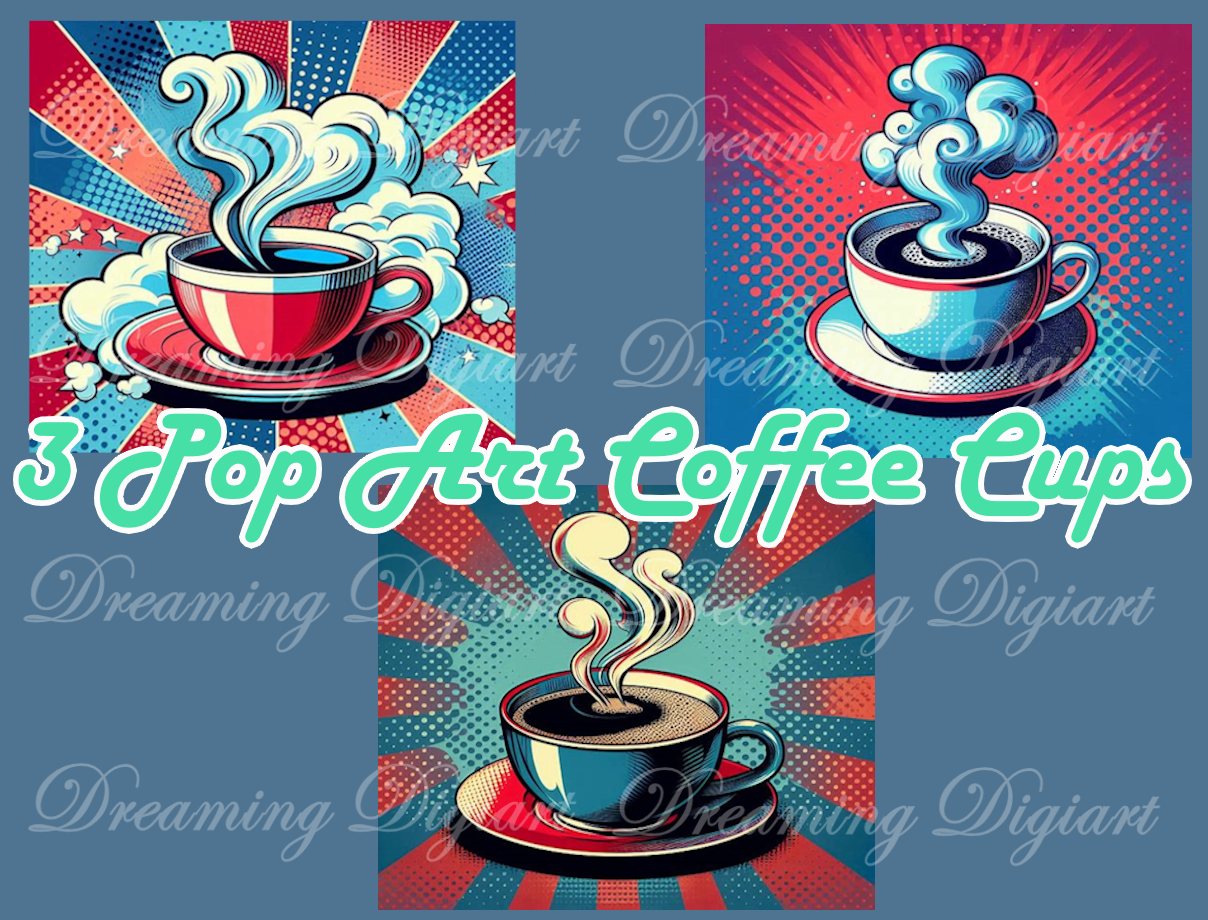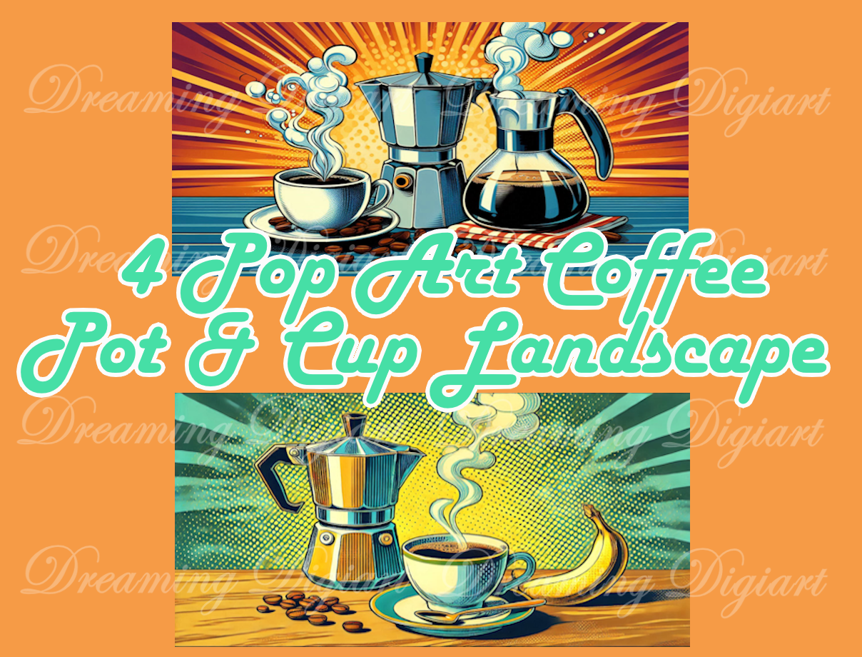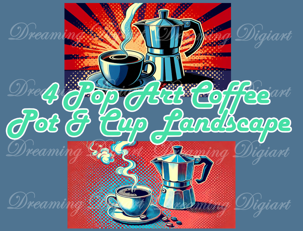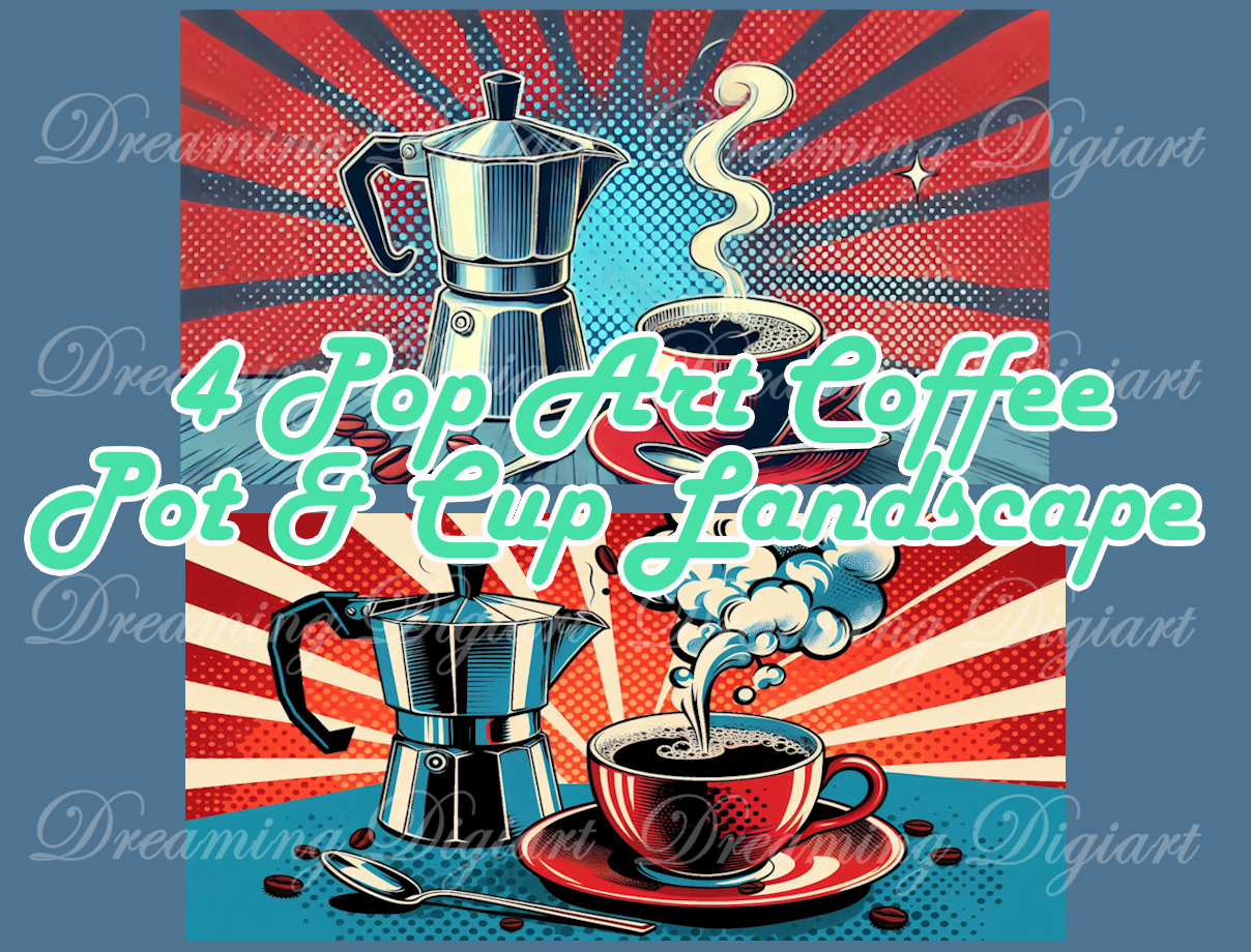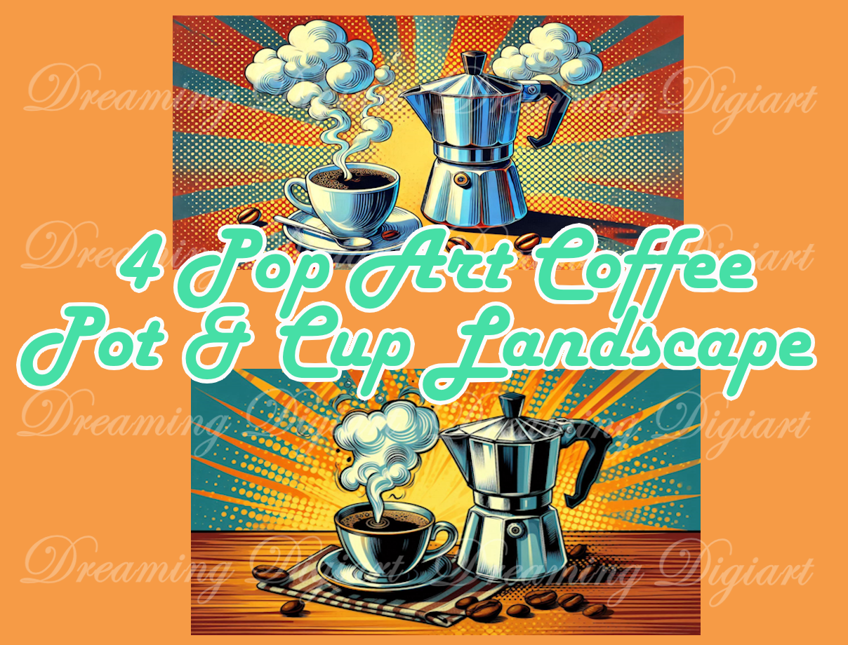 20 Pop Art Coffee Cup and Pot, Square and Landscape