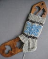 Foreslått pinnestørrelse for sokken er 3.5 og 4.0 mm, men bruk det du må for å få riktig strikkefasthet. Kanskje må du opp til 4.5 eller 5.0 på flerfargestrikken, hvis du strikker stramt.