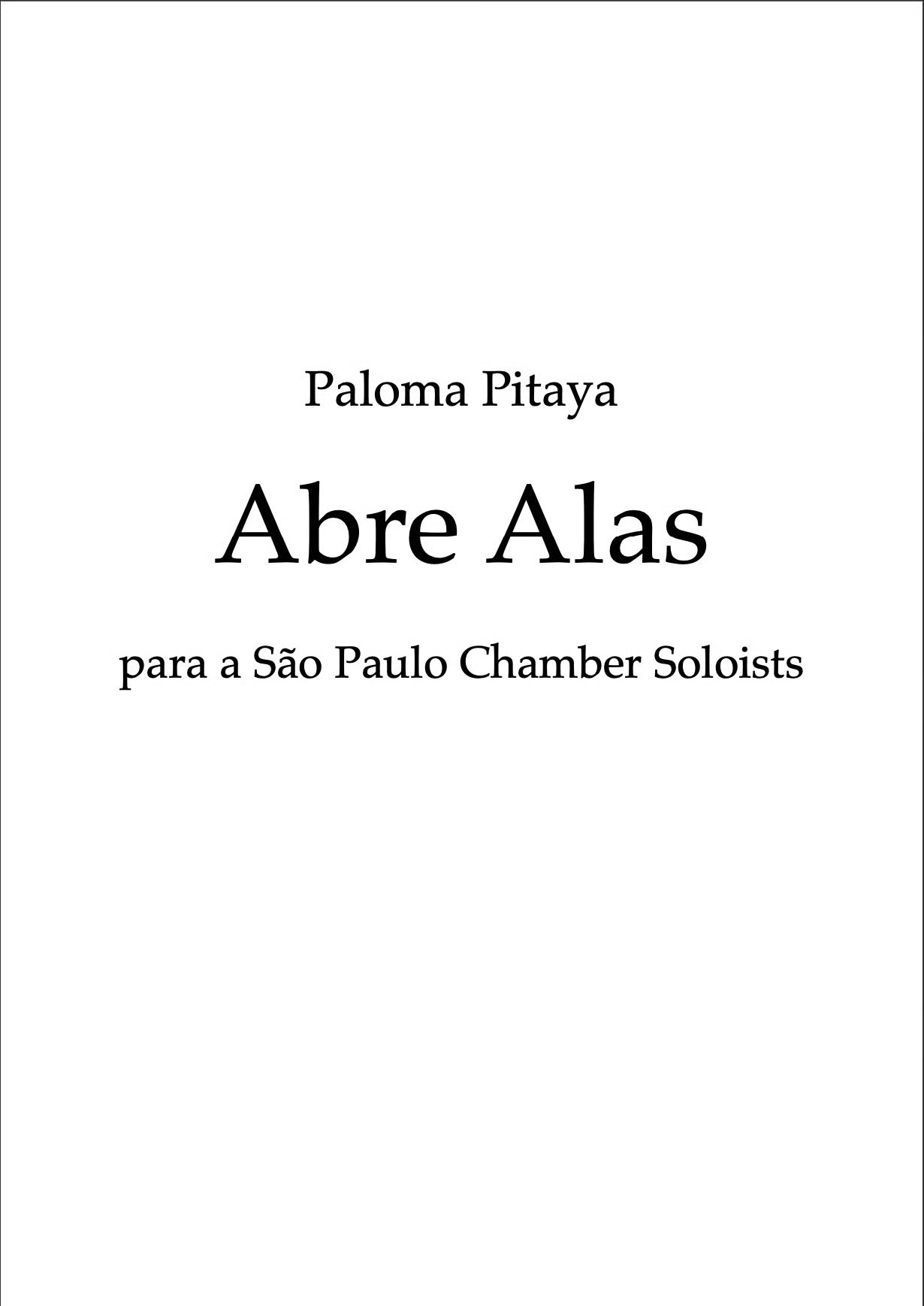 Abre Alas é uma abertura para orquestra de cordas. Comissionada e estreada pelo Festival São Paulo Chamber Soloists no Teatro Cultura Artística em São Paulo no ano de 2024.