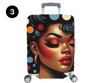 Turn heads at the airport with this elegant luggage cover showcasing a stylish character surrounded by a retro polka dot pattern. The design not only adds flair but also helps you easily identify your luggage.