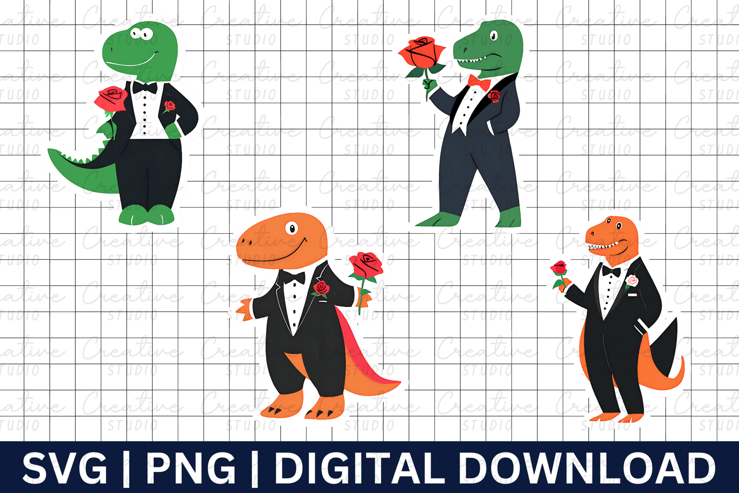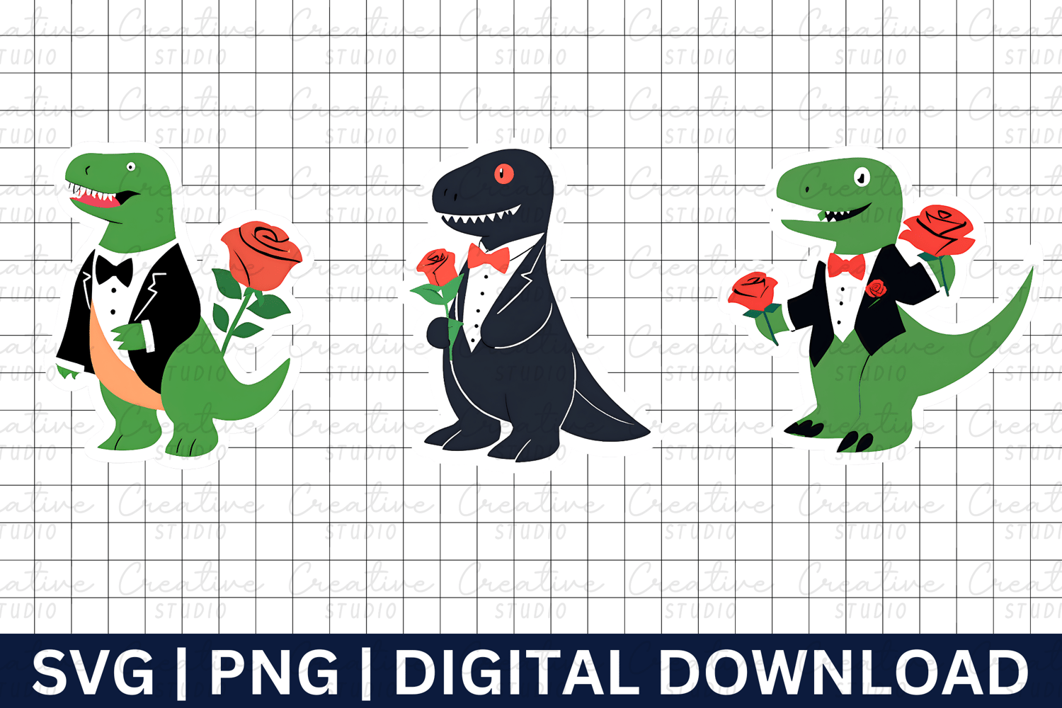 Dinosaur with Rose Clip Art Sticker Sublimation