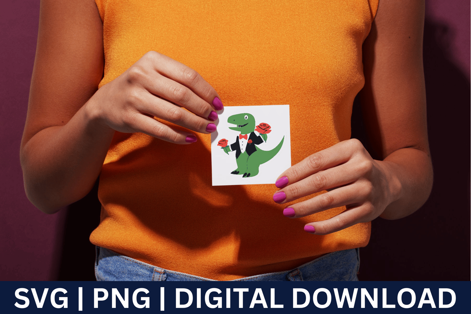 Dinosaur with Rose Design Sticker Clipart Sublimation