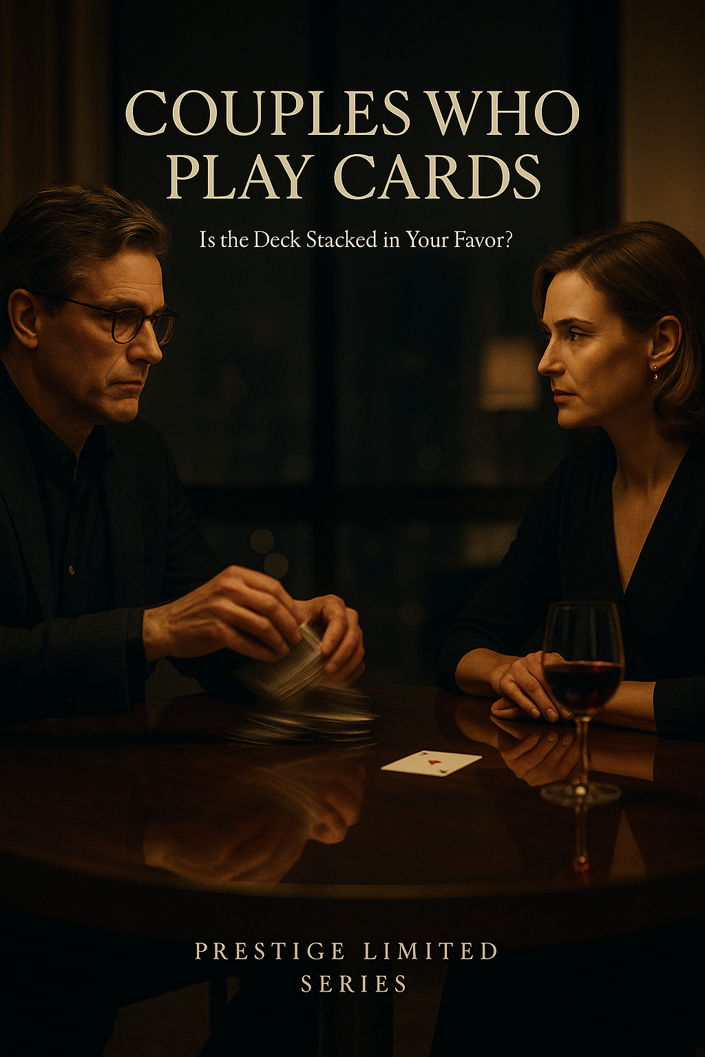 Couples Who Play Cards™ weaponizes intimacy as mathematics—turning marriage into a living algorithm of fate versus agency. It reframes ritual as both language and prison, diagnosing how control becomes a love dialect. The series harmonizes prestige aesthetics with emotional precision, generating a replicable format for relationship mythologies built on routine. It converts domestic stillness into cinematic volatility: an emotional instrument tuned to the impossible math of devotion.