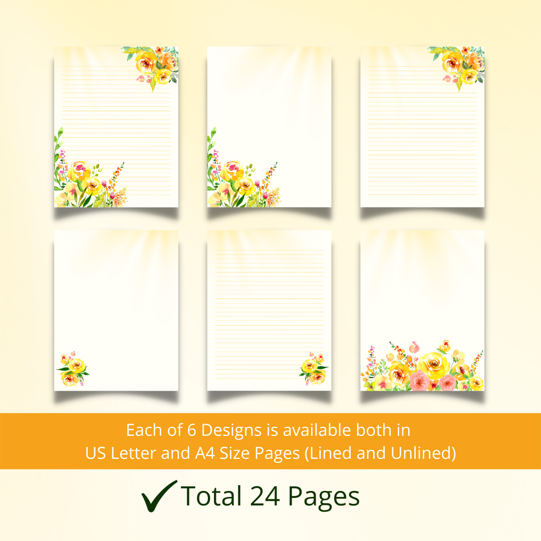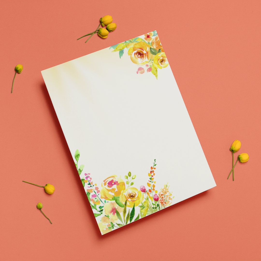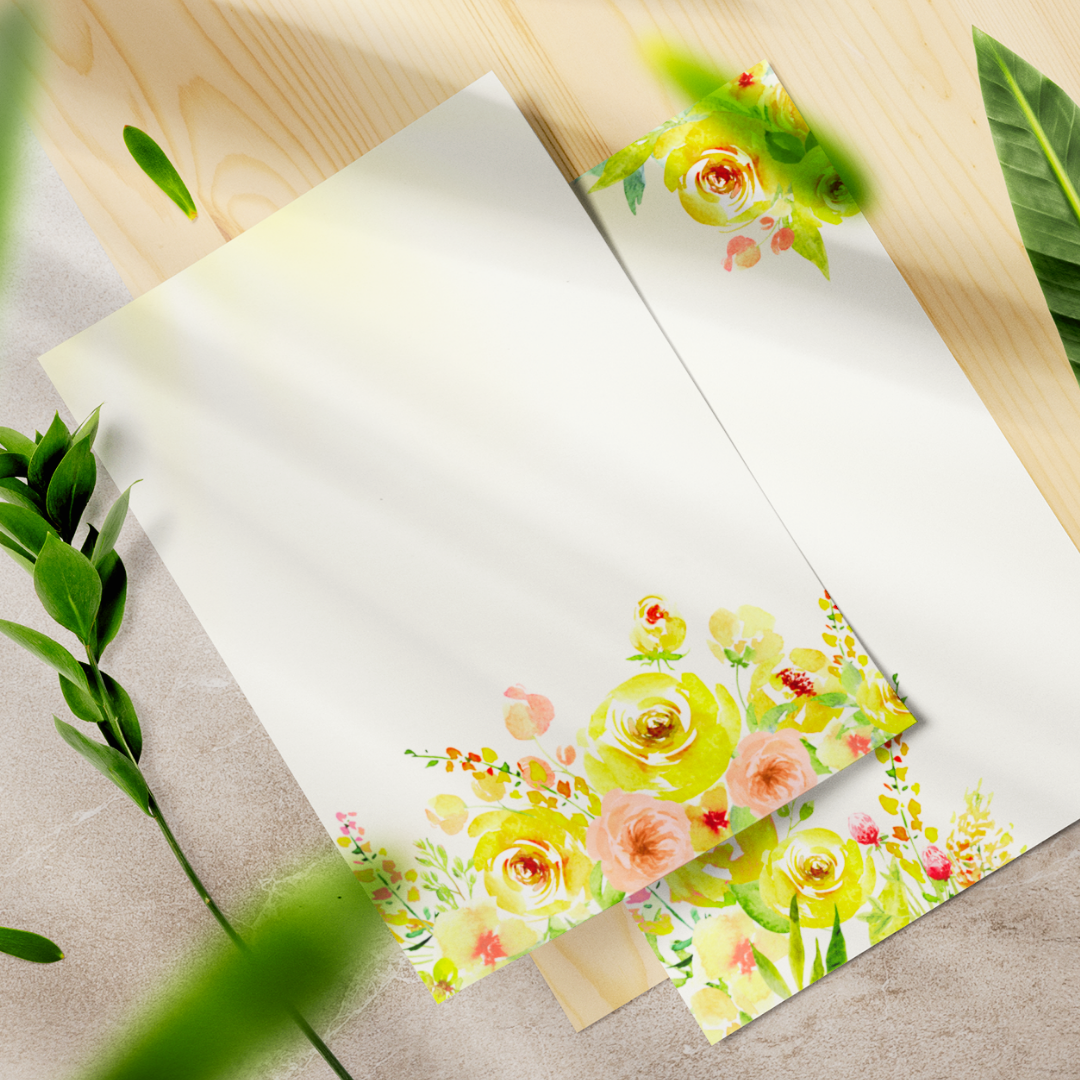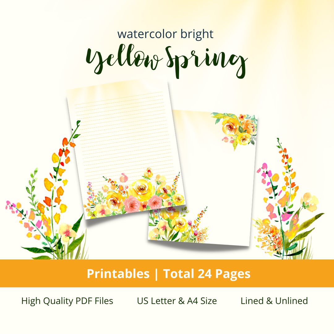 Bright Yellow Spring Watercolor Floral Printable Writing Paper