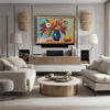 Each artwork can be customized with different layout options and color palettes to match your room's decor. The Frame TV also has a brightness sensor that adjusts the screen brightness based on your room's lighting conditions, ensuring the artwork always looks its best.